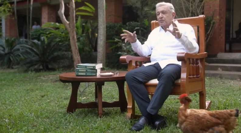El expresidente grabó el video en su finca La Chingada, ubicada en Palenque, Chiapas. El escenario es relajado: un jardín en el que pululan gallinas y pavorreales, y árboles que lo rodean. Se ve bien, aunque algo panzón.