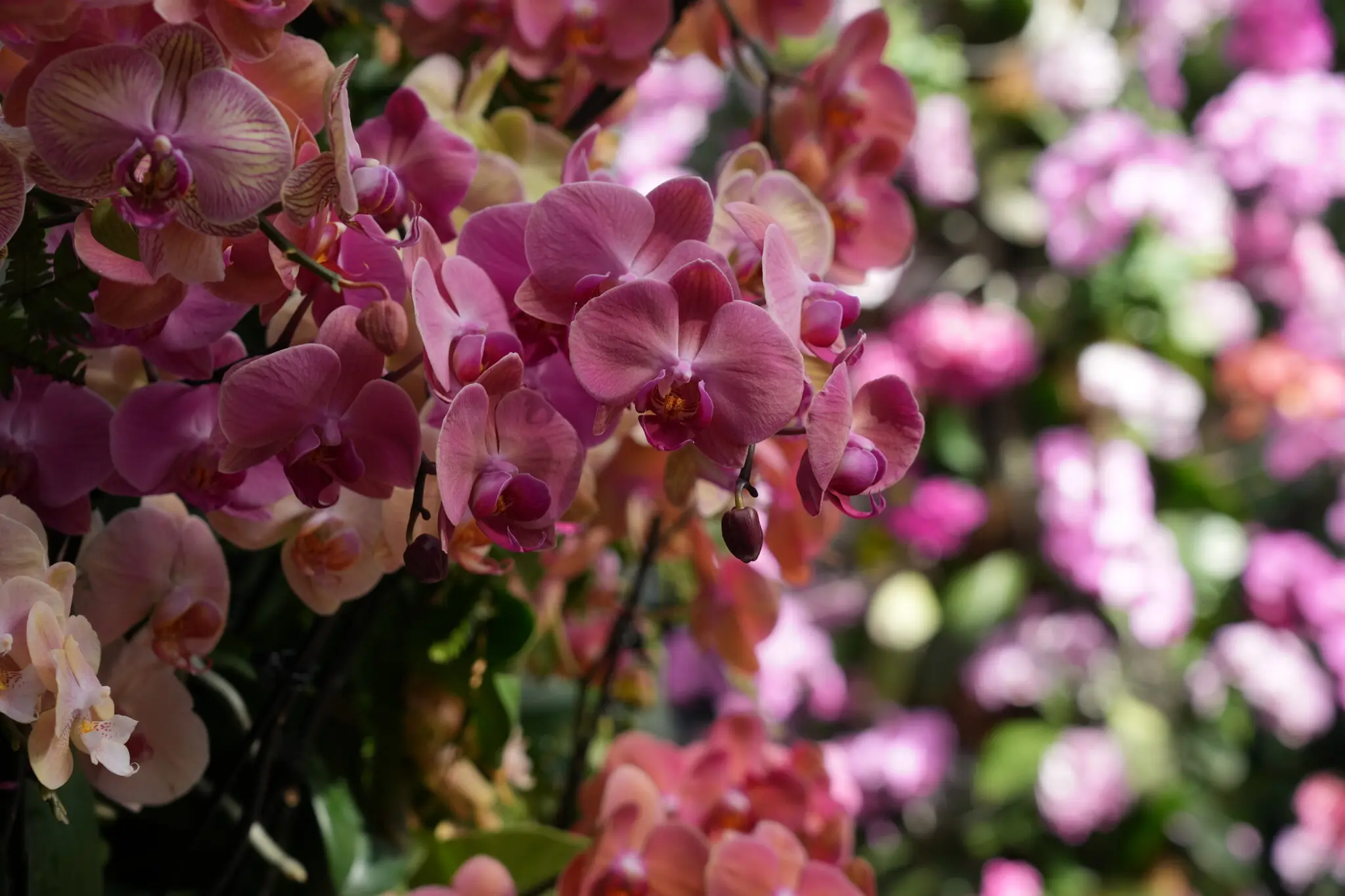 La resplandeciente pared naranja repleta de flores rosas y carmesí que me recibió en el Conservatorio Enid A. Haupt del Jardín Botánico de Nueva York un viernes reciente no era para nada lo que yo esperaba. Por supuesto, es el turno de la 22.ª Exposición Anual de Orquídeas, y la misión de esa exposición, según dijo Joanna L. Groarke, vicepresidenta de exposiciones y programación del jardín, es ofrecer una “inyección de color cuando la gente realmente lo necesita”.