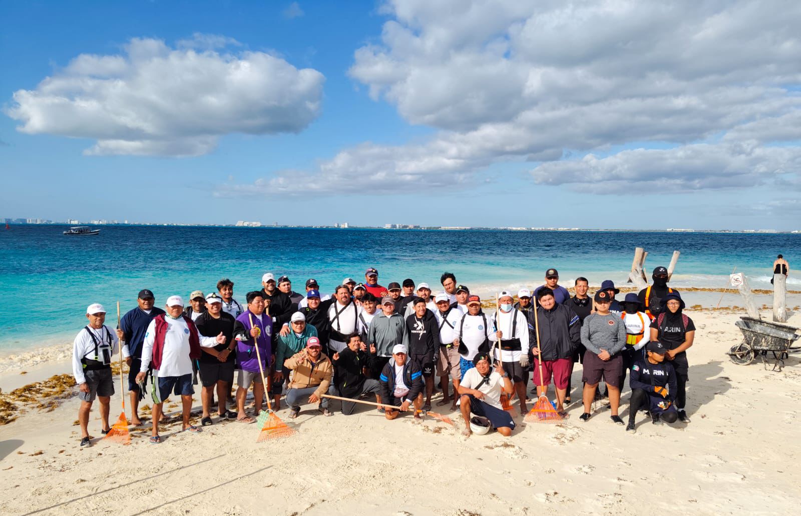 Isla Mujeres, Quintana Roo, a 19 de marzo de 2026.— Derivado del paso del frente frío número 41, que generó condiciones atípicas en el Caribe, se activó de manera inmediata un operativo de limpieza ante el recale de sargazo registrado en Playa Norte.