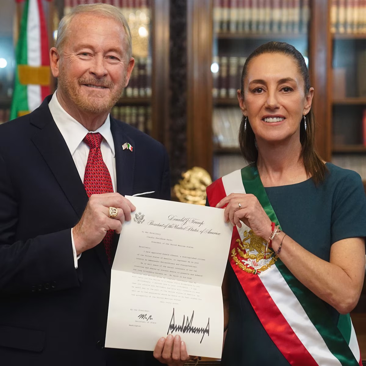 • Claudia Sheinbaum recibió cartas credenciales de 5 nuevos embajadores, incluyendo al de EU, Ronald Johnson, en Palacio Nacional