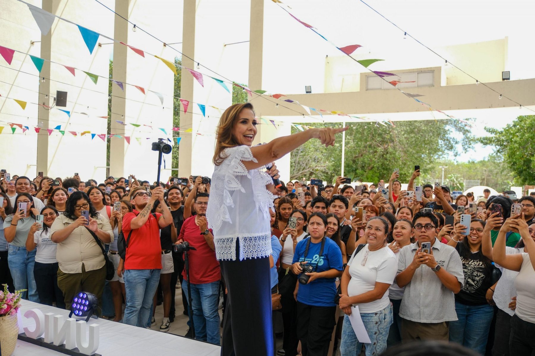 Ante alumnos, profesores, personal administrativo e invitados, la gobernadora de Quintana Roo reiteró que en este gobierno diferente, humanista con corazón feminista, el dinero destinado a esta Universidad no ha sido un gasto, sino una inversión.
