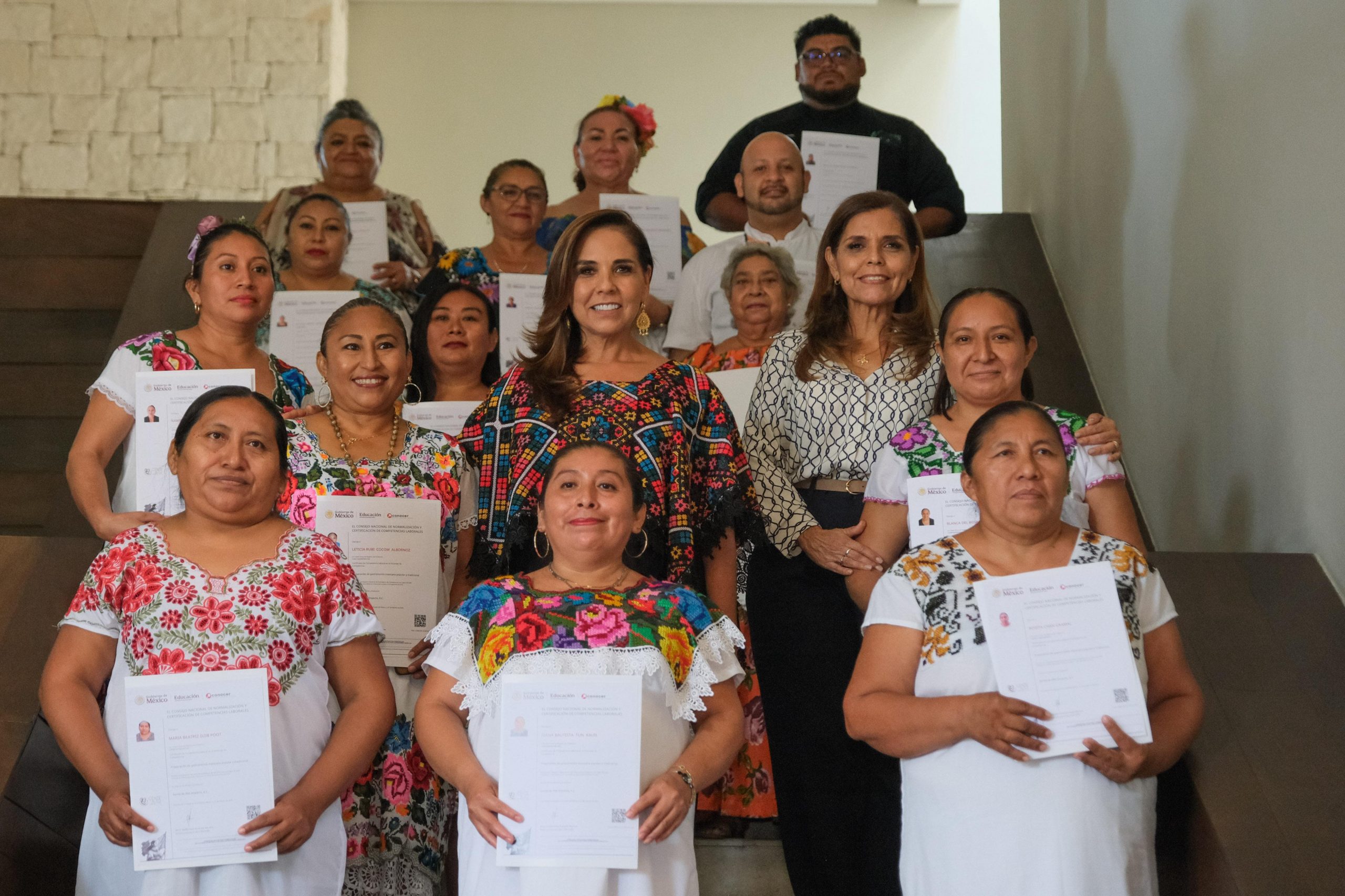 Acompañada de la presidenta honoraria del DIF Quintana Roo, Verónica Lezama Espinosa, la titular del Ejecutivo destacó que son mujeres y hombres maya hablantes, que aprendieron no en escuelas, sino en sus cocinas, junto a sus abuelas, en fogones humildes y mesas compartidas. “Hoy tienen en sus manos un papel que dice que lo que saben… y vale. Que lo que hacen… trasciende” citó.