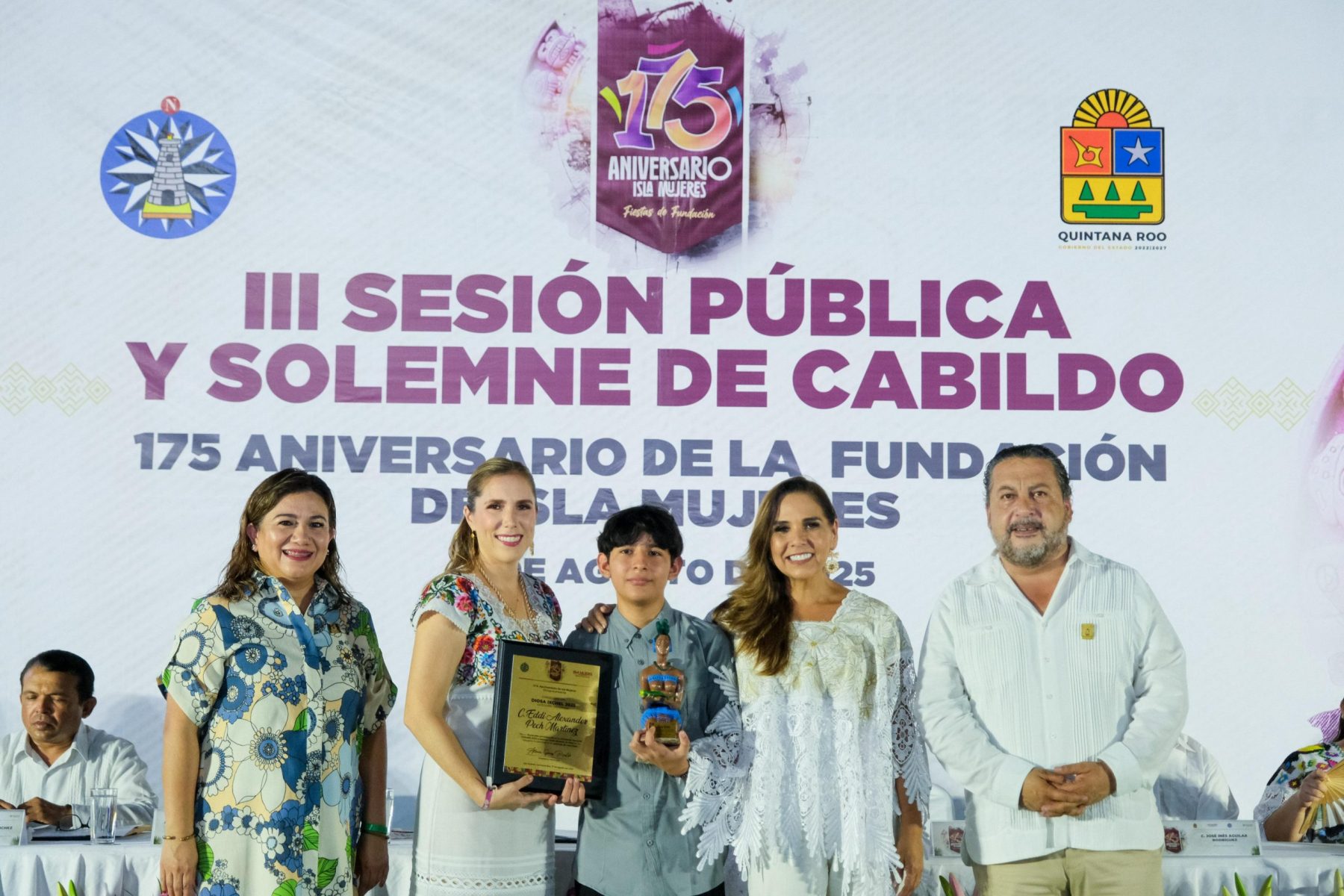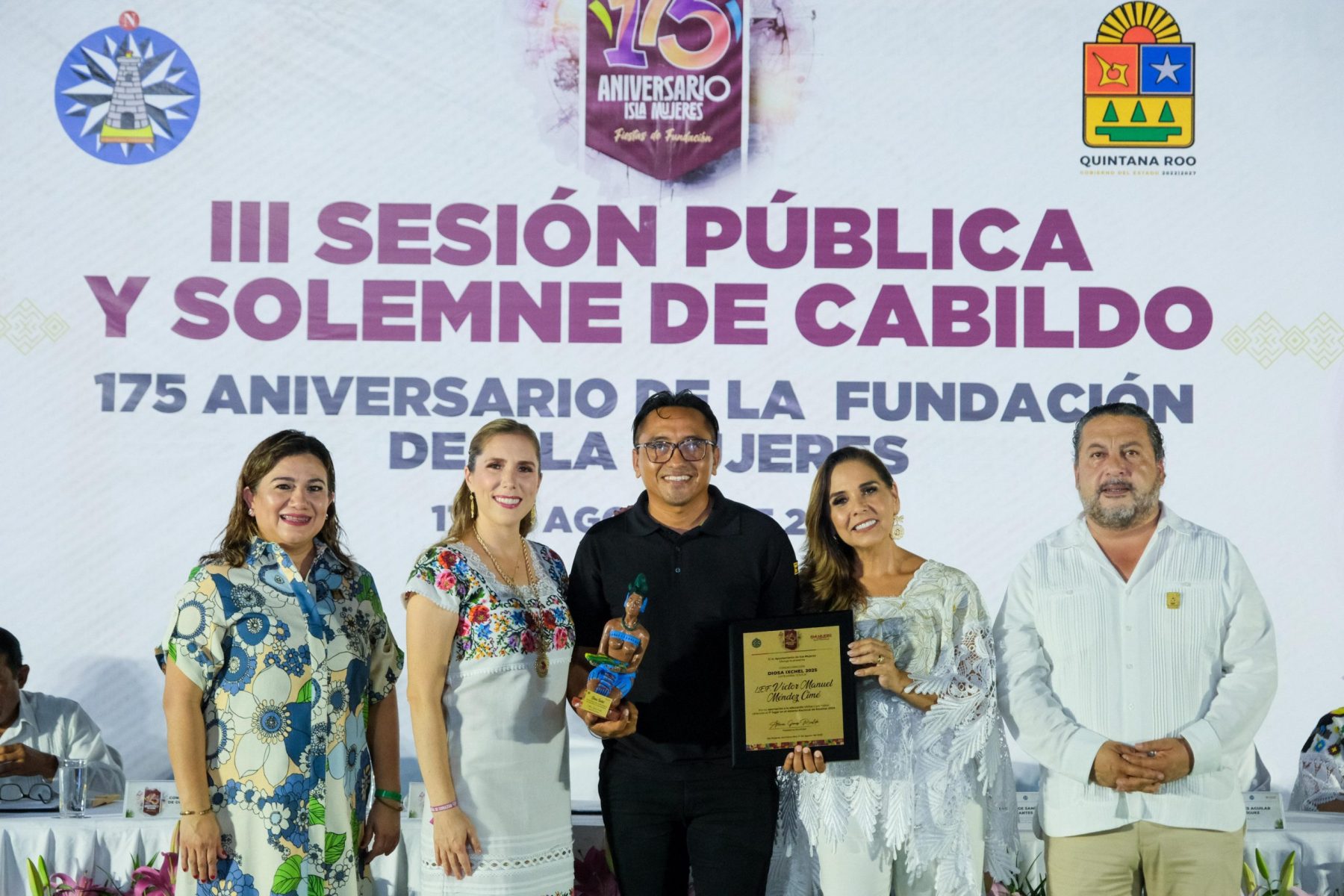 En el marco del 175 Aniversario de la Fundación de Isla Mujeres, el Gobierno Municipal llevó a cabo la entrega de reconocimientos y galardones a ciudadanas y ciudadanos que, con su esfuerzo y compromiso, han contribuido al desarrollo, identidad y bienestar de la comunidad.