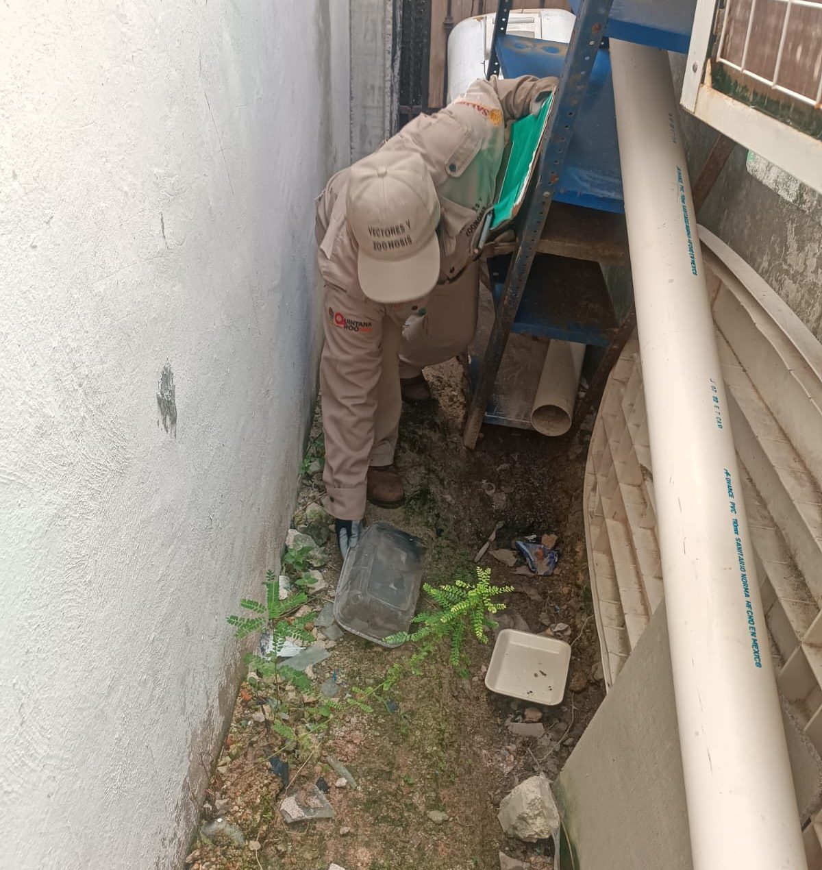 CHETUMAL, 18 de diciembre. – Trabajadores del Departamento de Vectores de la Jurisdicción Sanitaria No. 1, acudieron a realizar acciones de control larvario en la colonia Bicentenario, como parte de la estrategia para la prevención de enfermedades transmitidas por mosquitos.