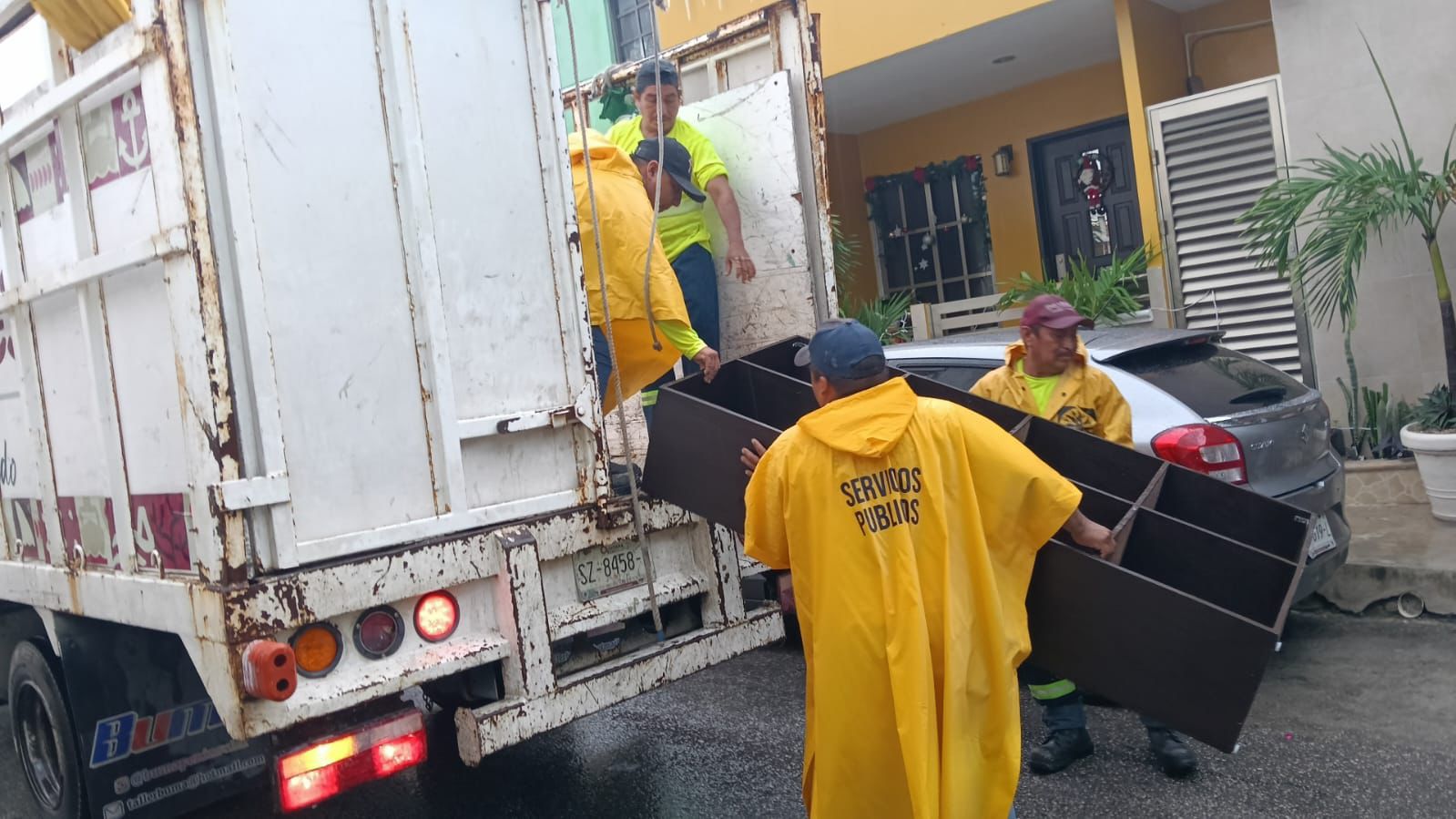 Este jueves, las acciones continuaron en las colonias El Cañotal, Miraflores, Lol-Beh y Caridad de Cobre, con una recolección de 2.5 toneladas de residuos, que incluyeron televisores, electrodomésticos, muebles viejos y colchones que fueron reemplazados durante la temporada festiva.