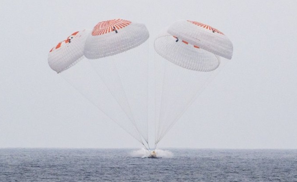 El regreso ocurrió mediante un descenso controlado en paracaídas frente a las costas del Pacífico, una operación que requiere condiciones meteorológicas estables para garantizar la seguridad de la tripulación y del equipo científico que traen a bordo