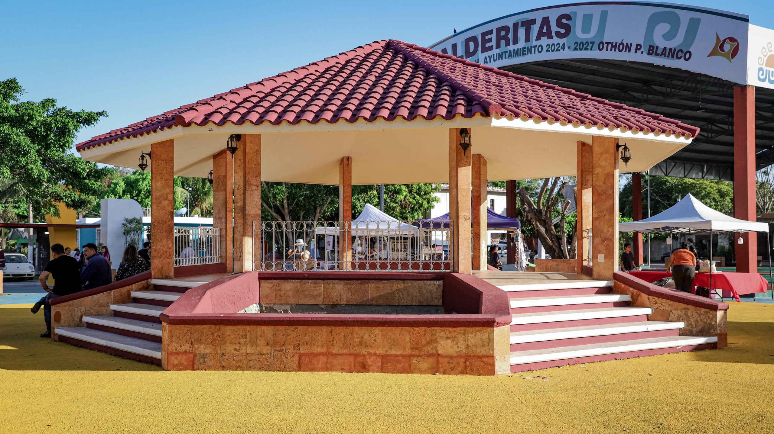 CALDERITAS, 19 de marzo.- La presidenta municipal de Othón P. Blanco, Yensunni Martínez Hernández, entregó la obra de rehabilitación integral del domo y el parque público de la colonia Veracruz en la localidad de Calderitas.
