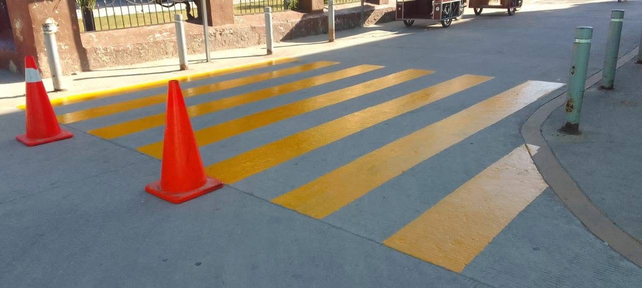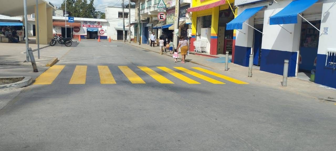 Los trabajos consistieron en la pintura de pasos peatonales y banquetas en puntos estratégicos de la cabecera municipal, con el objetivo de mejorar el flujo vehicular y aumentar la seguridad para conductores y peatones.