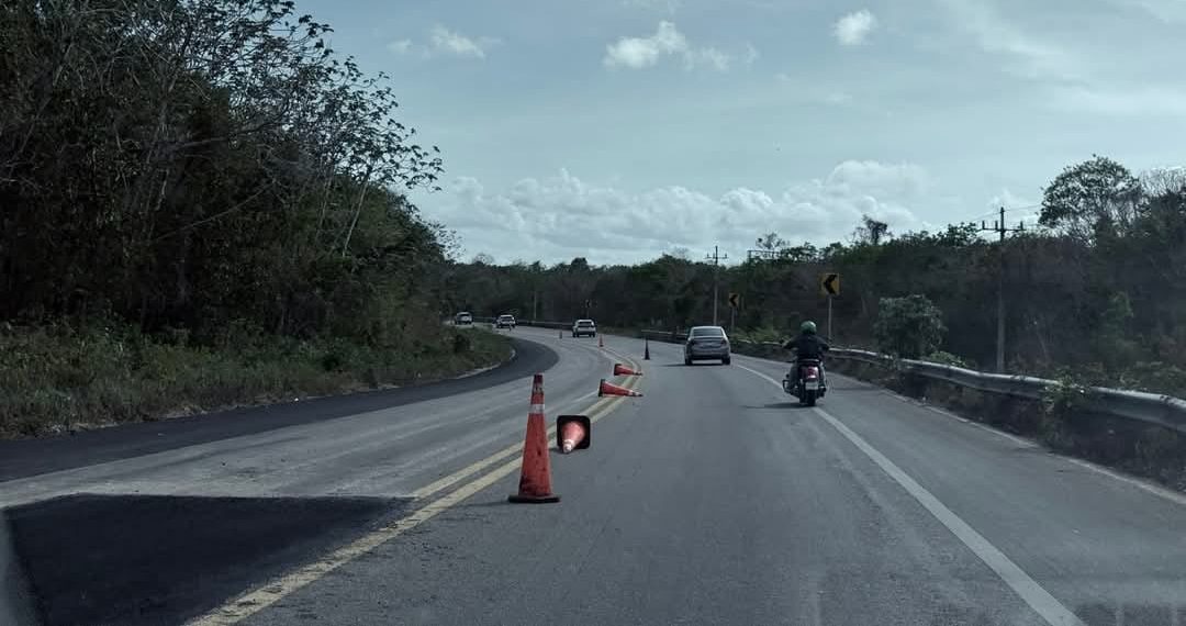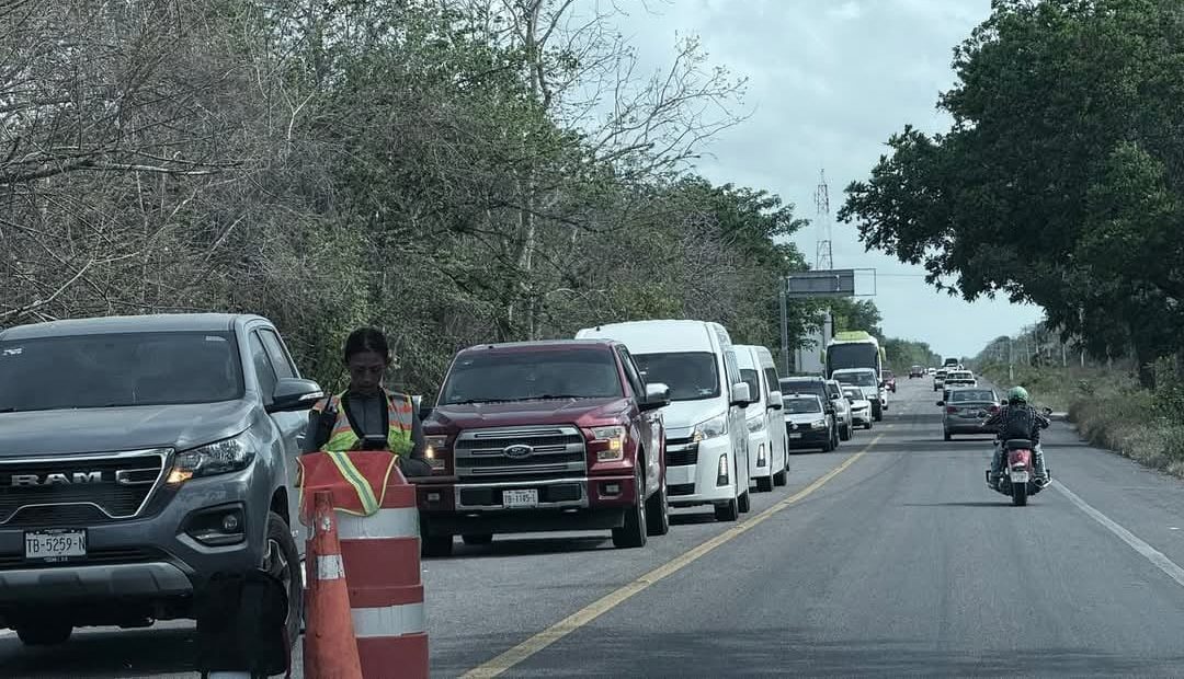 TULUM a 09 de mayo.– Trabajos de reparación en la carretera federal Tulum–Felipe Carrillo Puerto han generado importantes afectaciones al tránsito vehicular, provocando largas filas y demoras, especialmente en las horas de mayor afluencia. Las obras se ubican aproximadamente a tres kilómetros después de Aldea Tulum, en dirección sur.