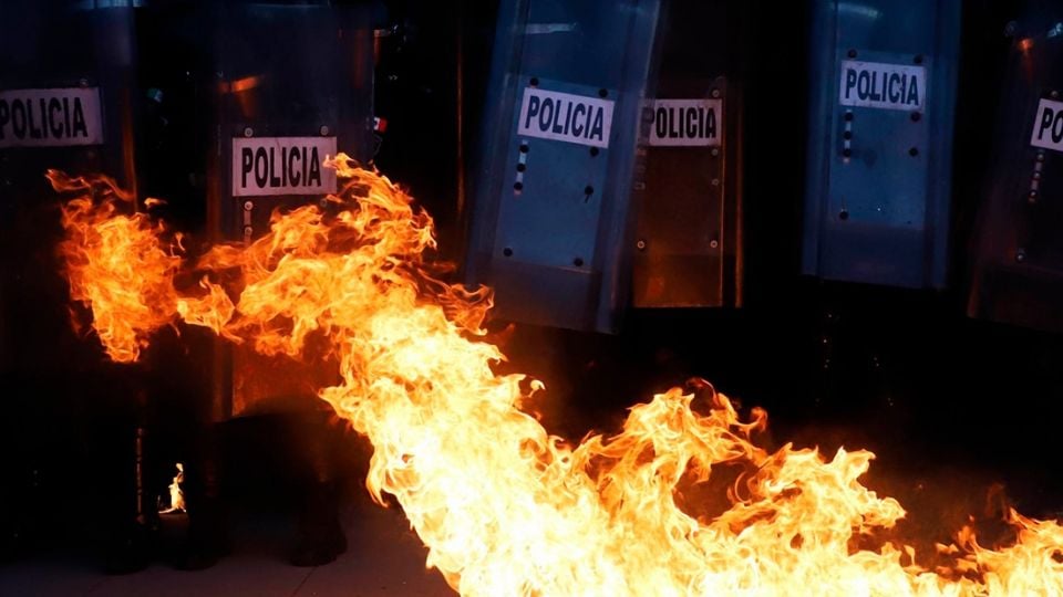 De acuerdo con reportes, la gresca ha dejado seis policías policontundidos y uno con quemaduras.