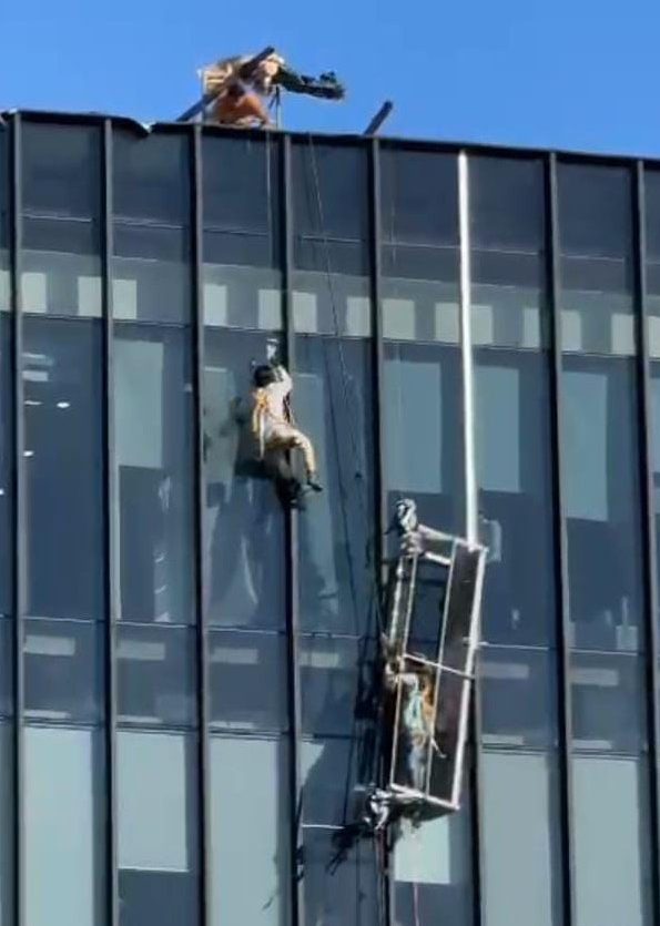 Rescatan a Dos Trabajadores que Limpiaban Vidrios y que Quedaron Colgando del Edificio