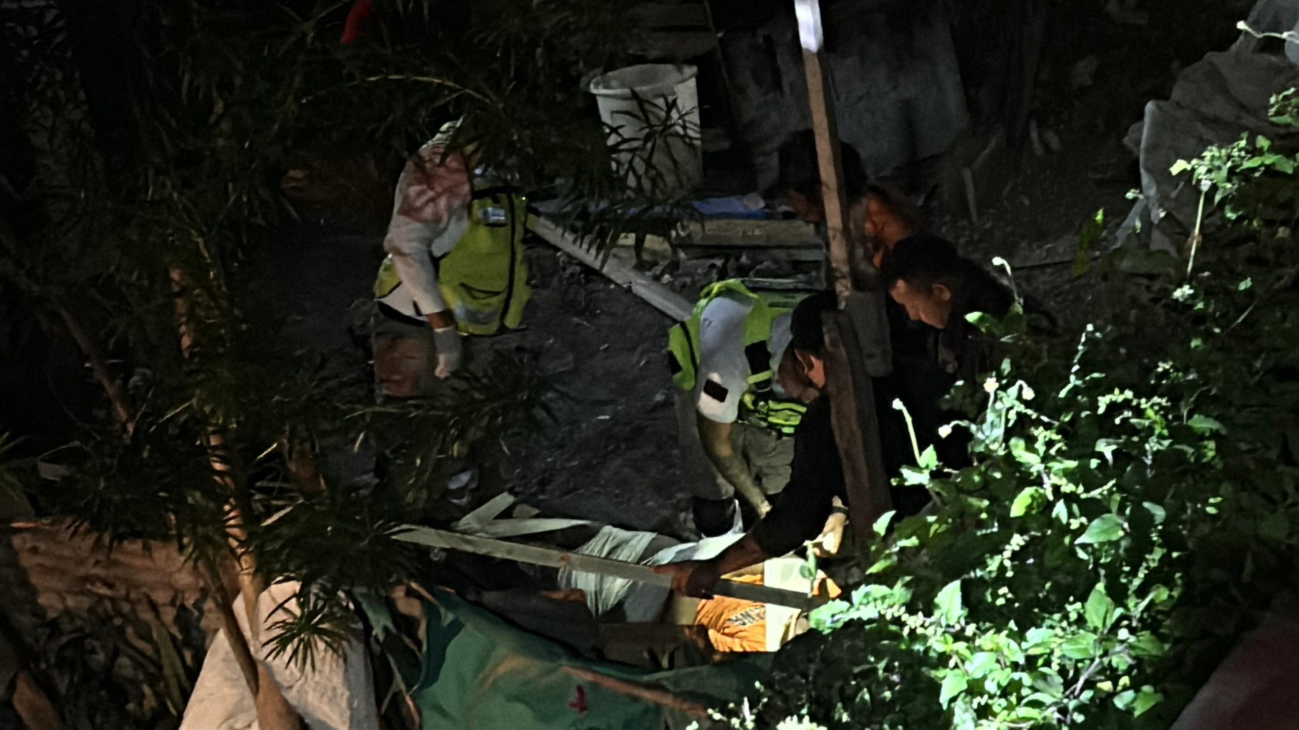 Paramédicos del Sistema de Atención Médica de Urgencias (Samu) llegaron sin el apoyo de la Policía Estatal (PE). Con ayuda de una escalera y de vecinos llegaron al fondo del barranco. Dieron con el hombre al que le aplicaron los primeros auxilios, lo inmovilizaron y subieron en una camilla rígida con ayuda de vecinos, cuerdas y de la escalera. El tipo, presentaba heridas sangrantes en el rostro, además de posible fractura en la cabeza y clavícula. Los paramédicos decidieron que era mejor canalizarlo a un sanatorio para un mejor diagnóstico médico.