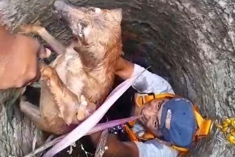 MOTUL, YUC., 26 de abril.- Elementos de Protección Civil de la ciudad de Motul realizaron con éxito el rescate de una perrita que cayó al fondo de un pozo, en una vivienda de la calle 37 con 14 de la colonia Santiago Castillo.