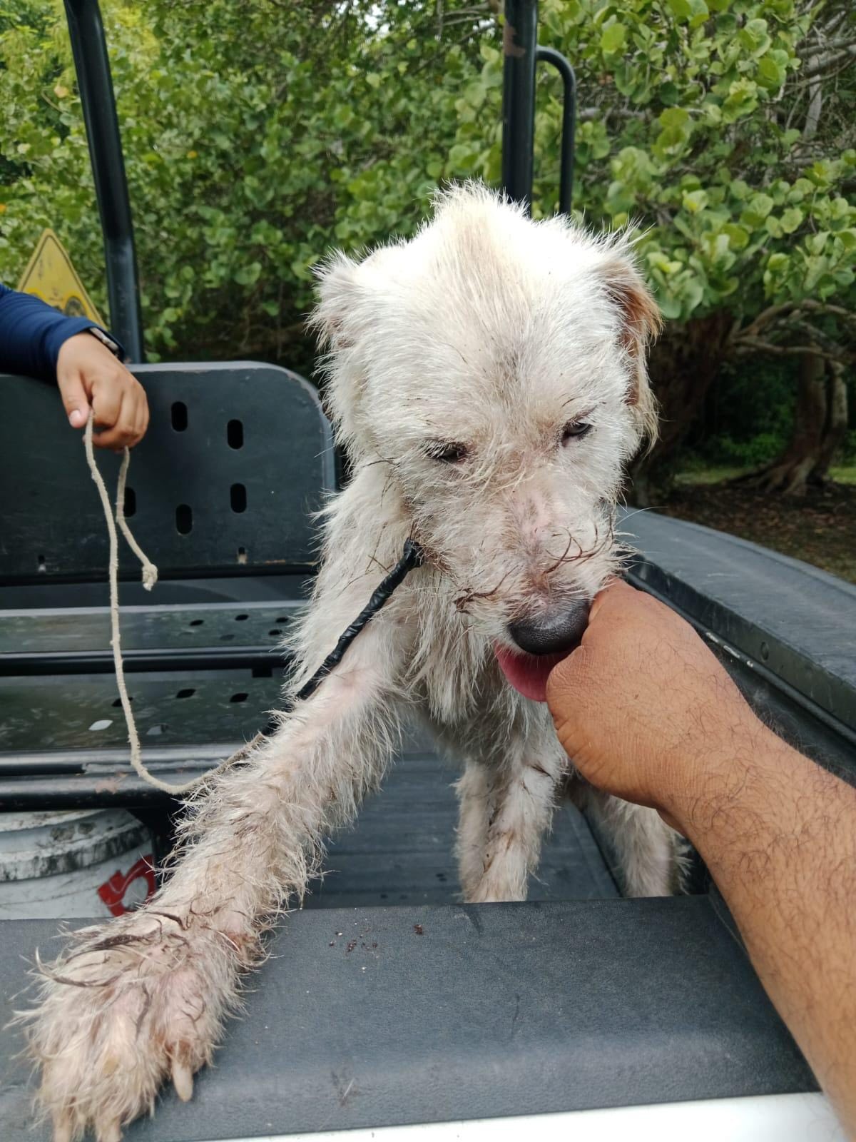 • Una perrita atada y abandonada en el Boulevard Bahía fue rescatada por autoridades de Chetumal. Ya recibe atención médica y cuidados en el Centro de Atención Canina y Felina