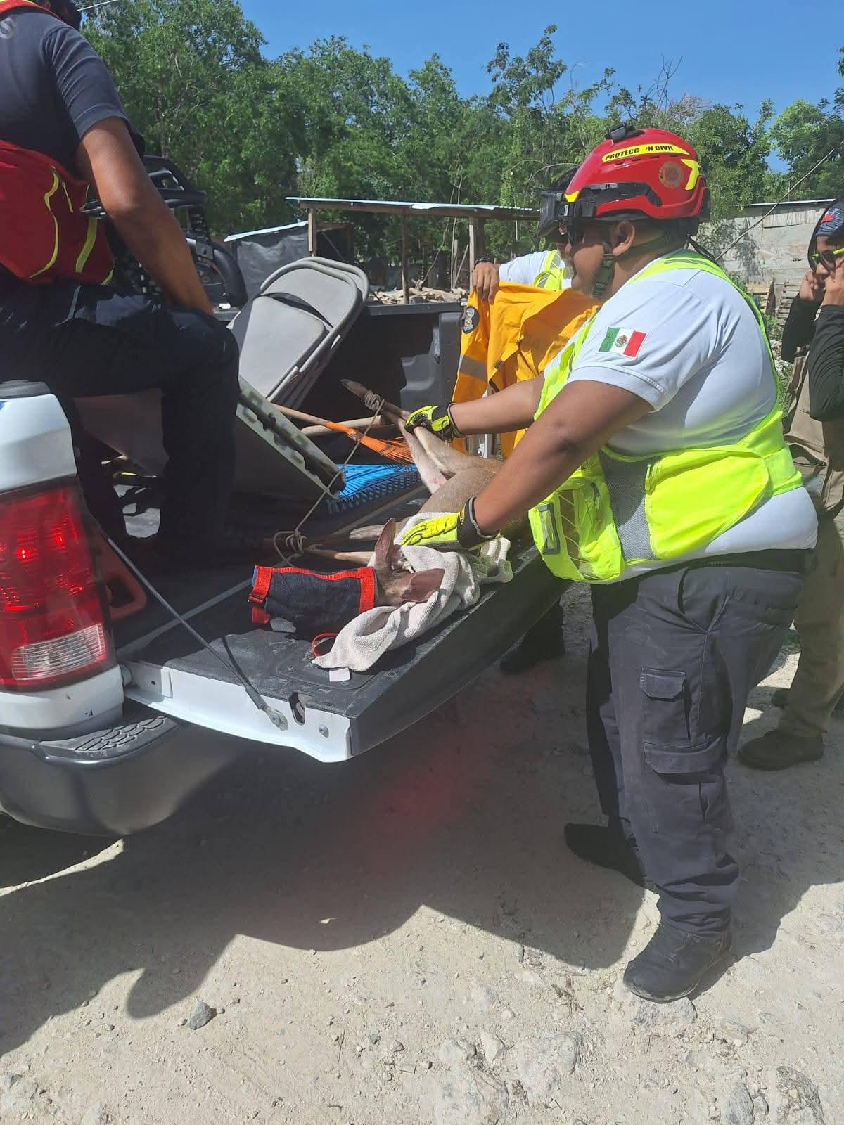 Playa del Carmen, a 19 de julio de 2025.- En una acción conjunta entre la Protección Civil, Prevención de Riesgos y Bomberos, asi coml de la Unidad de Protección Animal del Ayuntamiento de Playa del Carmen, un venado silvestre fue rescatado y trasladado para su reubicación, luego de ser perseguido por una jauría en la zona irregular de Nueva Esperanza en Playa del Carmen.
