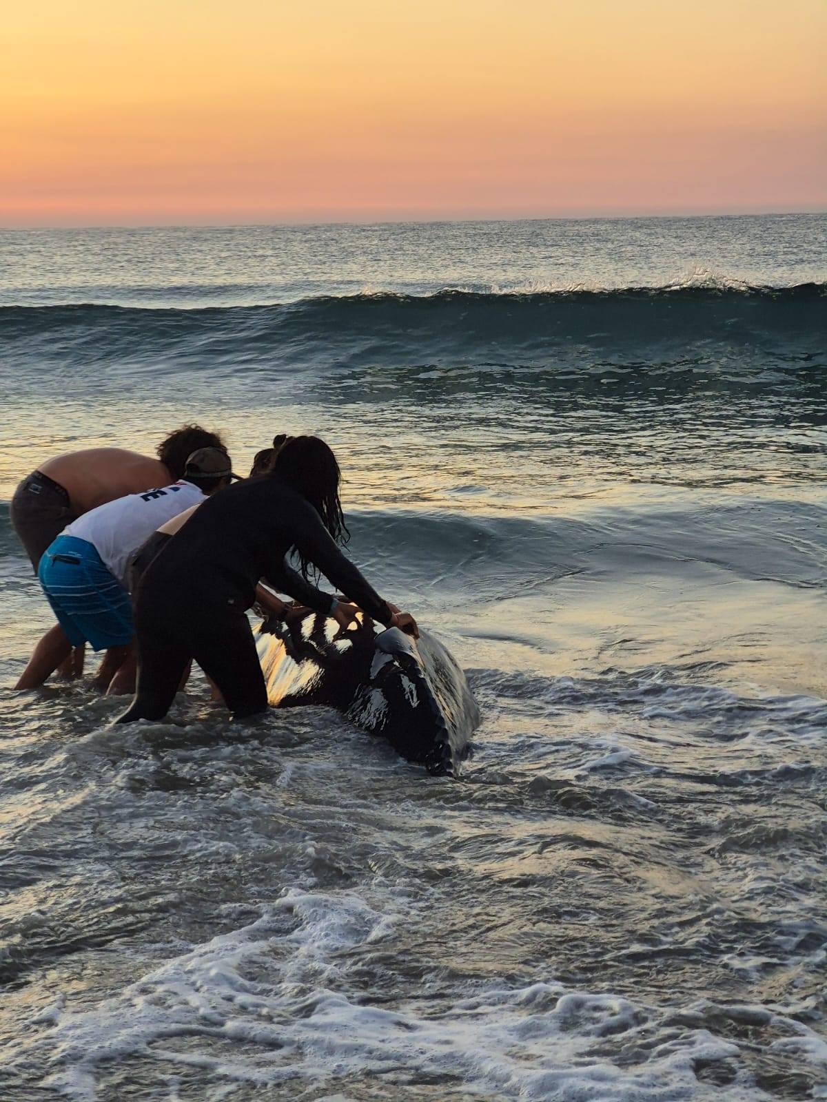 Tras la localización, se activaron de inmediato las maniobras de atención primaria, que incluyeron labores de rehidratación constante para evitar afectaciones por exposición prolongada fuera del agua, así como acciones de redirección controlada hacia mar adentro.