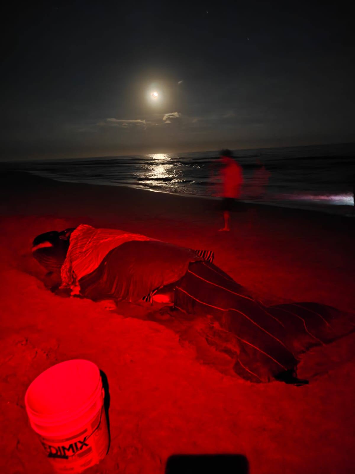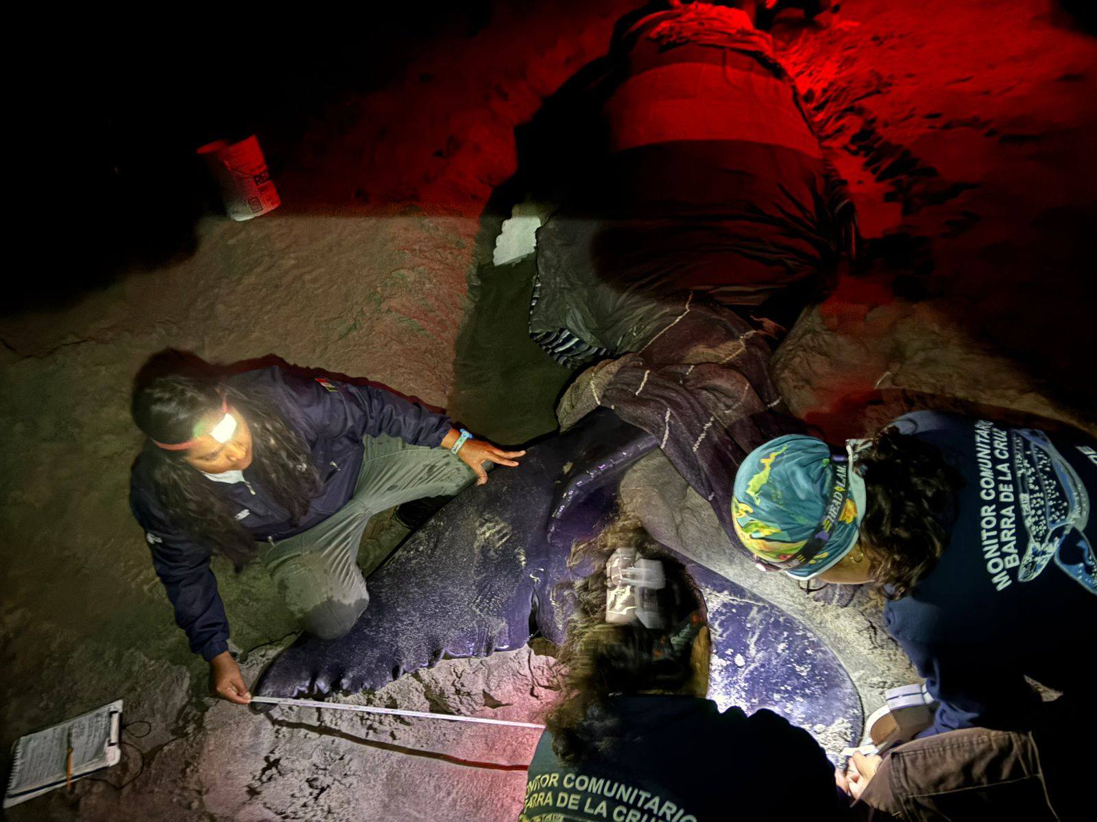 Cría de 4.60 metros fue localizada durante monitoreo nocturno de tortugas marinas en Barra de la Cruz–Playa Grande