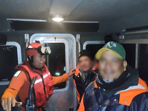 Derivado de lo anterior, se realizó el rescate en la mar de dos náufragos a bordo de la embarcación menor de nombre “MARIBLE” en inmediaciones de Cabo Haro, a quienes se les brindó apoyo con agua y alimentos, mismos que posteriormente fueron trasladados a puerto seguro.