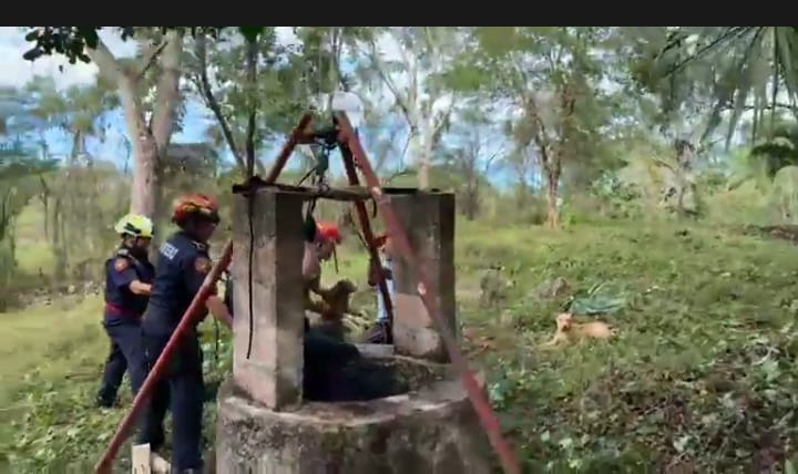 TIZIMÍN, YUC., 27 de diciembre.- Bomberos de la SSP asignados a la base de Tizimín realizaron un éxitoso rescate de “Bingo” un perrito que cayó dentro de un pozo de más de 25 metros de profundidad.
