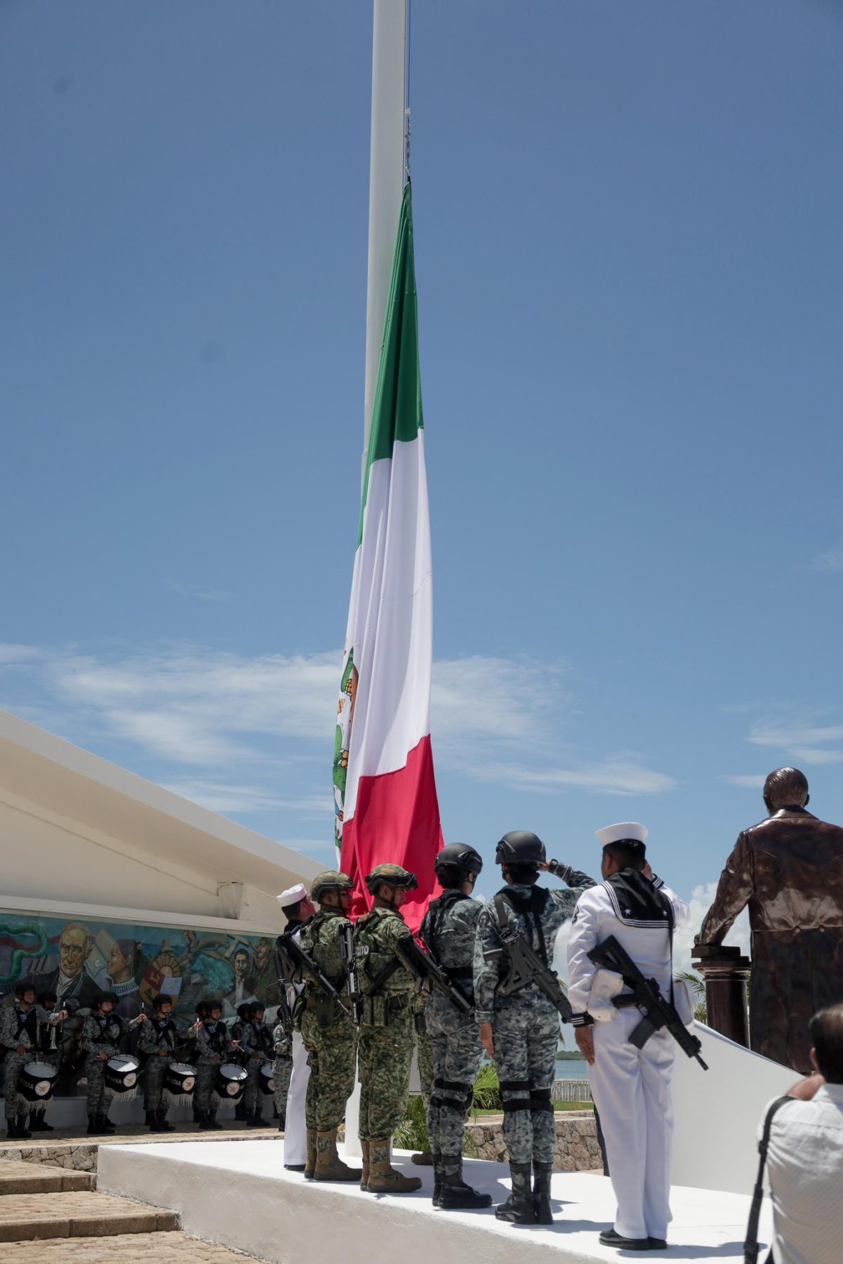 El acto cívico estuvo encabezado por el presidente de la Junta de Gobierno y Coordinación Política (Jugocopo), Jorge Sanén Cervantes; la secretaria de Gobierno, María Cristina Torres Gómez; así como el magistrado electo del Tribunal Superior de Justicia Fabián Azael Gamboa Son, como representante del Poder Judicial; la presidenta municipal de Othón P. Blanco, Yensunni Martínez Hernández; el comandante de la XXXIV Zona Militar, General de Brigada Fidel Mondragón Rivero; el comandante de la XI Zona Naval, Vicealmirante Marco Antonio Muñoz Hernández; el Teniente Oswaldo Rosado, representante de la Guardia Nacional; y la presidenta del Consejo Ciudadano de Chetumal, Georgina Marzuca Fuentes.