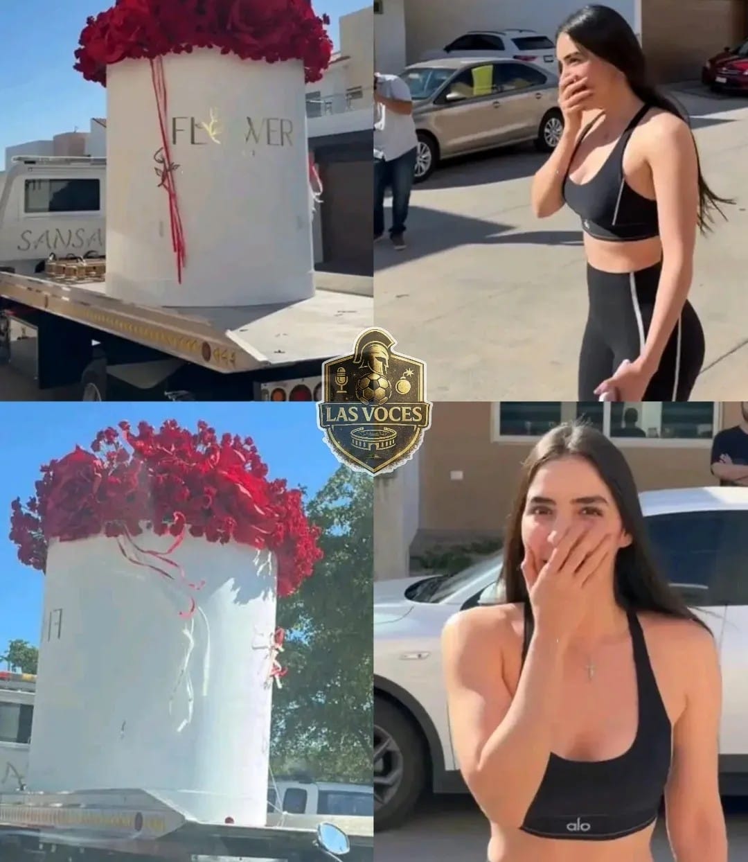 🔥🇲🇽 Dimos con la afortunada hermosa mujer a la que le enviaron el súper mega ramo de más de mil rosas rojas y 3 metros de altura que se hizo viral en #