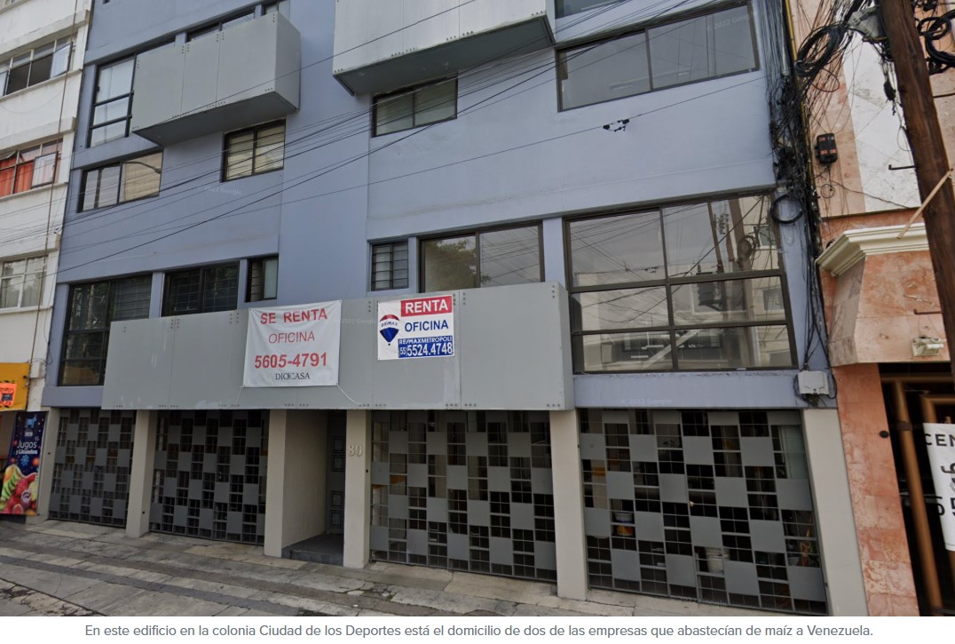 Nueve de los doce envíos de maíz a Venezuela, a través Casillo Commodities fueron realizados por la empresa NG Logística, que tiene su domicilio en el despacho de un edificio de oficinas ubicado en la calle Carolina 80, en la colonia Ciudad de los Deportes.