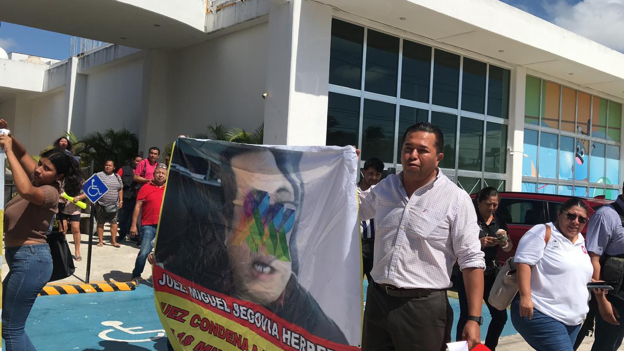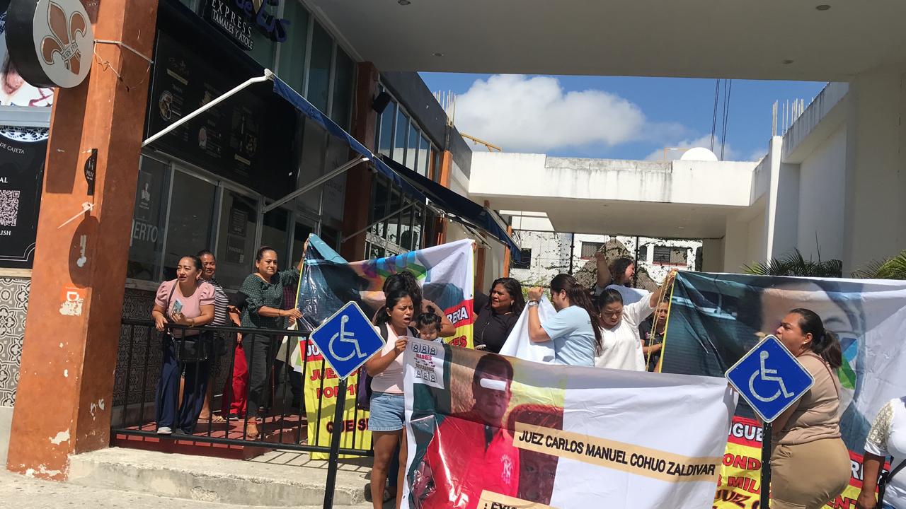 Con pancarta en mano más de una veintena de manifestantes entre ellos familiares también del exdiputado Emiliano Ramos Hernández ingresaron a un restaurante del centro de la ciudad de Cancún en donde los morenistas ofrecían una conferencia de prensa y comenzaron a lanzar consigna hacia los legisladores prensentes acundolos de postular a candidatos corruptos y ello pidieronbla anulación de la elección de los magistrados y jueces locales por considerar que muchos de ellos enfrentan denuncias por mal desempeño de sus funciones.