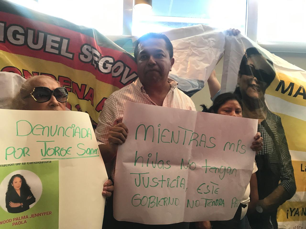 Con pancarta en mano más de una veintena de manifestantes entre ellos familiares también del exdiputado Emiliano Ramos Hernández ingresaron a un restaurante del centro de la ciudad de Cancún en donde los morenistas ofrecían una conferencia de prensa y comenzaron a lanzar consigna hacia los legisladores prensentes acundolos de postular a candidatos corruptos y ello pidieronbla anulación de la elección de los magistrados y jueces locales por considerar que muchos de ellos enfrentan denuncias por mal desempeño de sus funciones.