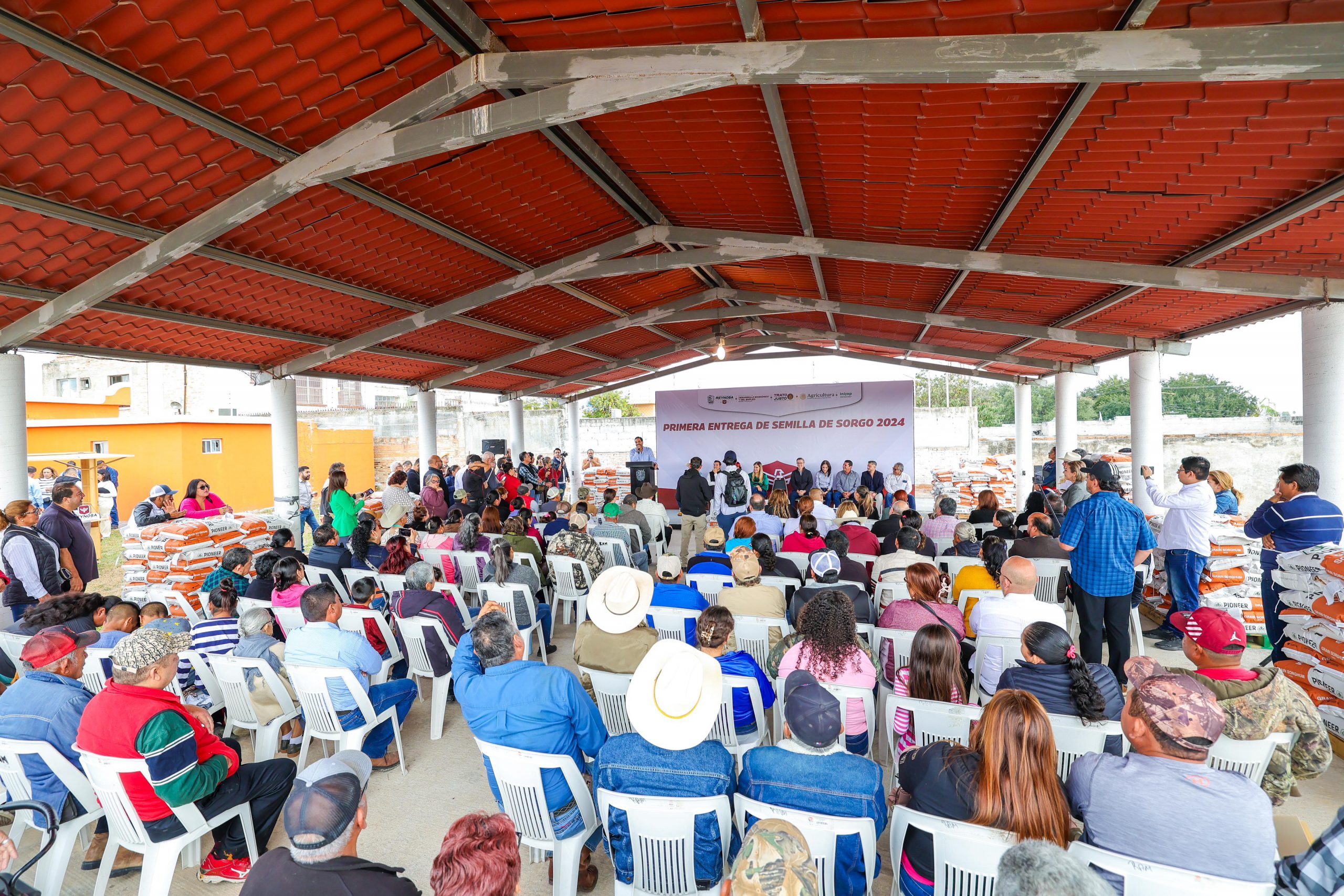 El Presidente Municipal Carlos Peña Ortiz, llevó a cabo la Primera Entrega de Semilla de Sorgo 2024 del programa Trato Justo, contando con la participación de los Senadores de la República, Maki Esther Ortiz Domínguez y José Ramón Gómez Leal, además de las Diputadas Federales Claudia Alejandra Hernández Sáenz y Cassandra Priscila De los Santos Flores.