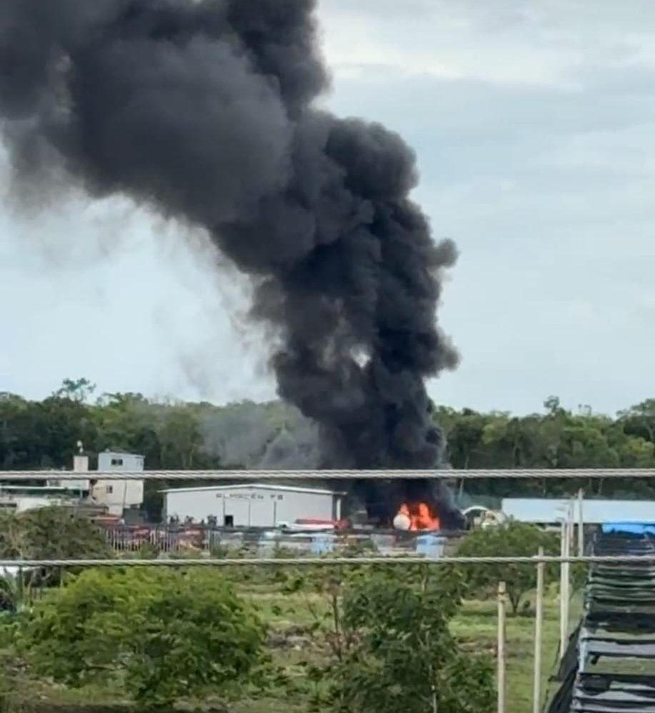 FELIPE CARRILLO PUERTO, 26 de junio .— Un incendio de gran magnitud se registró la mañana de este jueves en el campamento del Frente 3 del Tramo 6 del Tren Maya, luego de que una pipa cargada con combustible se prendiera en llamas, generando un riesgo latente de explosión, debido a la cercanía con otras unidades que también contienen hidrocarburos.