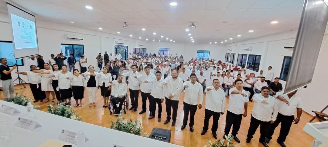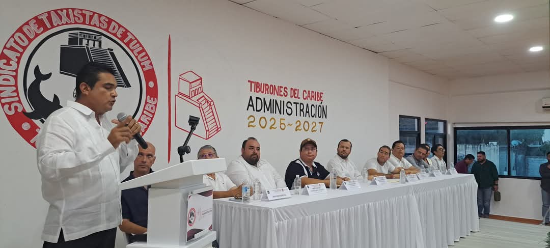 TULUM a 16 de mayo. — En un ambiente de unidad y compromiso sindical, el nuevo Comité Directivo del Sindicato de Taxistas “Tiburones del Caribe” rindió protesta este viernes en Tulum, marcando el inicio de una nueva etapa para el gremio, con Manuel Enrique Solís Alcocer como secretario general electo para el periodo 2025–2027.