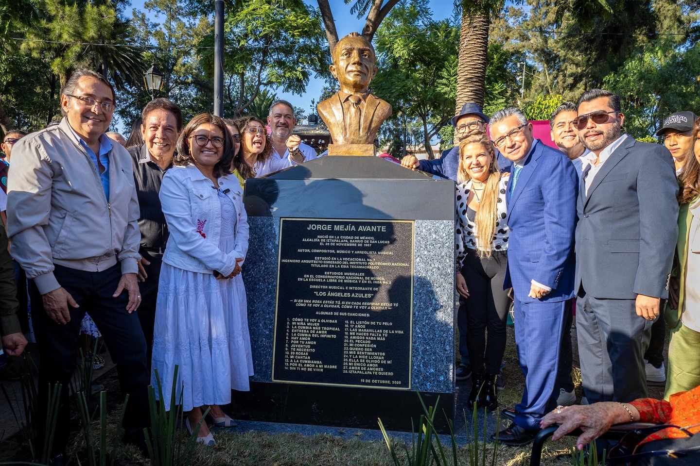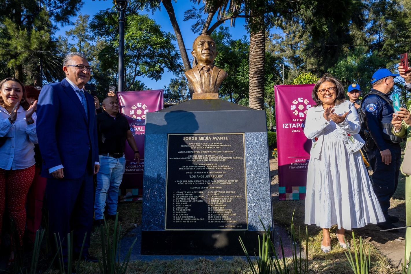 Un busto del compositor, músico, arreglista y director musical Jorge Mejía Avante, integrante de Los Ángeles Azules, fue develado en la Macroplaza Cuitláhuac, al lado de la Alcaldía Iztapalapa.