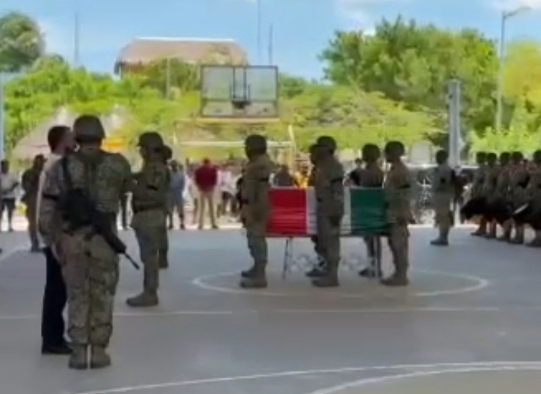 Familiares, amigos y miembros del Ejército Mexicano se congregaron en la cancha techada de la isla para rendirle tributo, acompañados por salvas de fusil, el toque de silencio y una guardia de honor.
