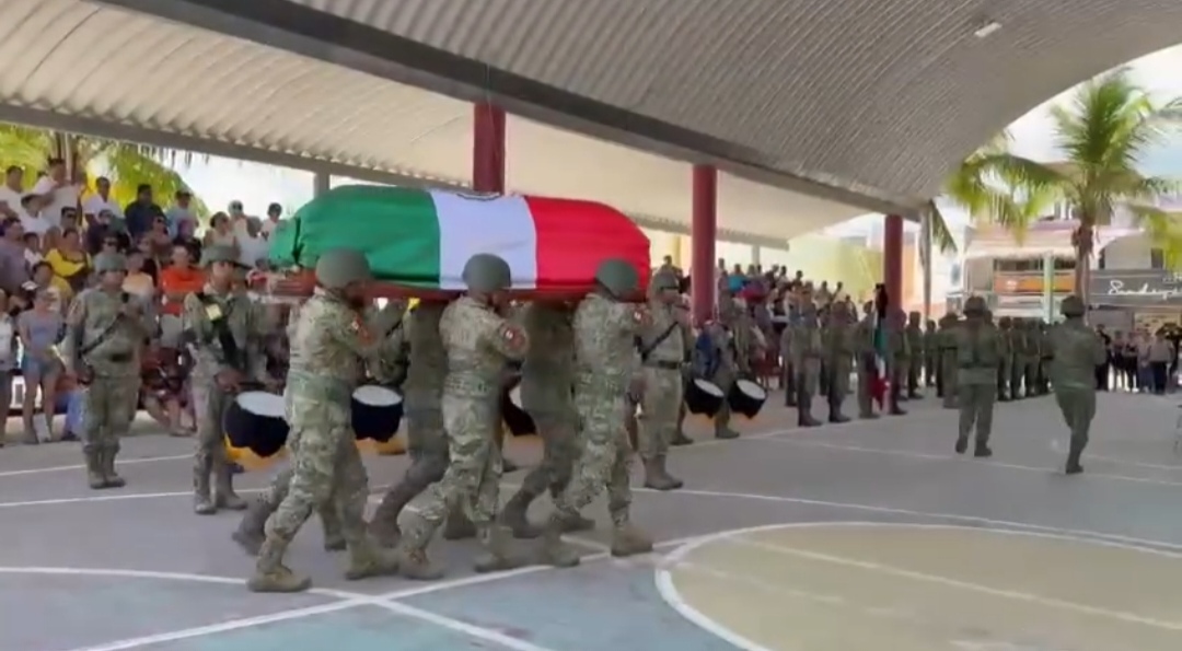 Familiares, amigos y miembros del Ejército Mexicano se congregaron en la cancha techada de la isla para rendirle tributo, acompañados por salvas de fusil, el toque de silencio y una guardia de honor.