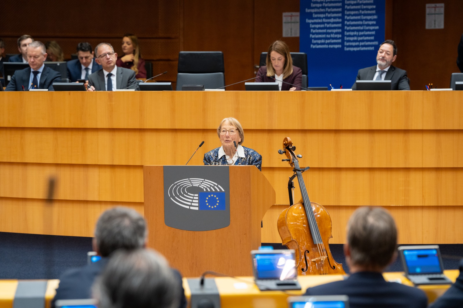 “Para mí, es una reunión en espíritu con el padre al que he echado de menos durante más de 80 años”, dijo la hija del violonchelista, la nonagenaria Corrie Hermann, que narró a los eurodiputados la historia de su padre y la sorprendente travesía del instrumento.