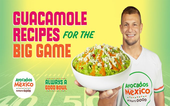 “¡Nunca pensé que sería posible tener cuatro cuartos de guacamole sin parar! Gracias a mi asociación con ‘Avocados From Mexico’ he podido darle vida a mi receta favorita de ‘Gronkamole’ y ponerme en ‘Modo Gronk’ con mucho guacamole para el gran juego”, dijo Rob respecto a su participación en esta asociación.