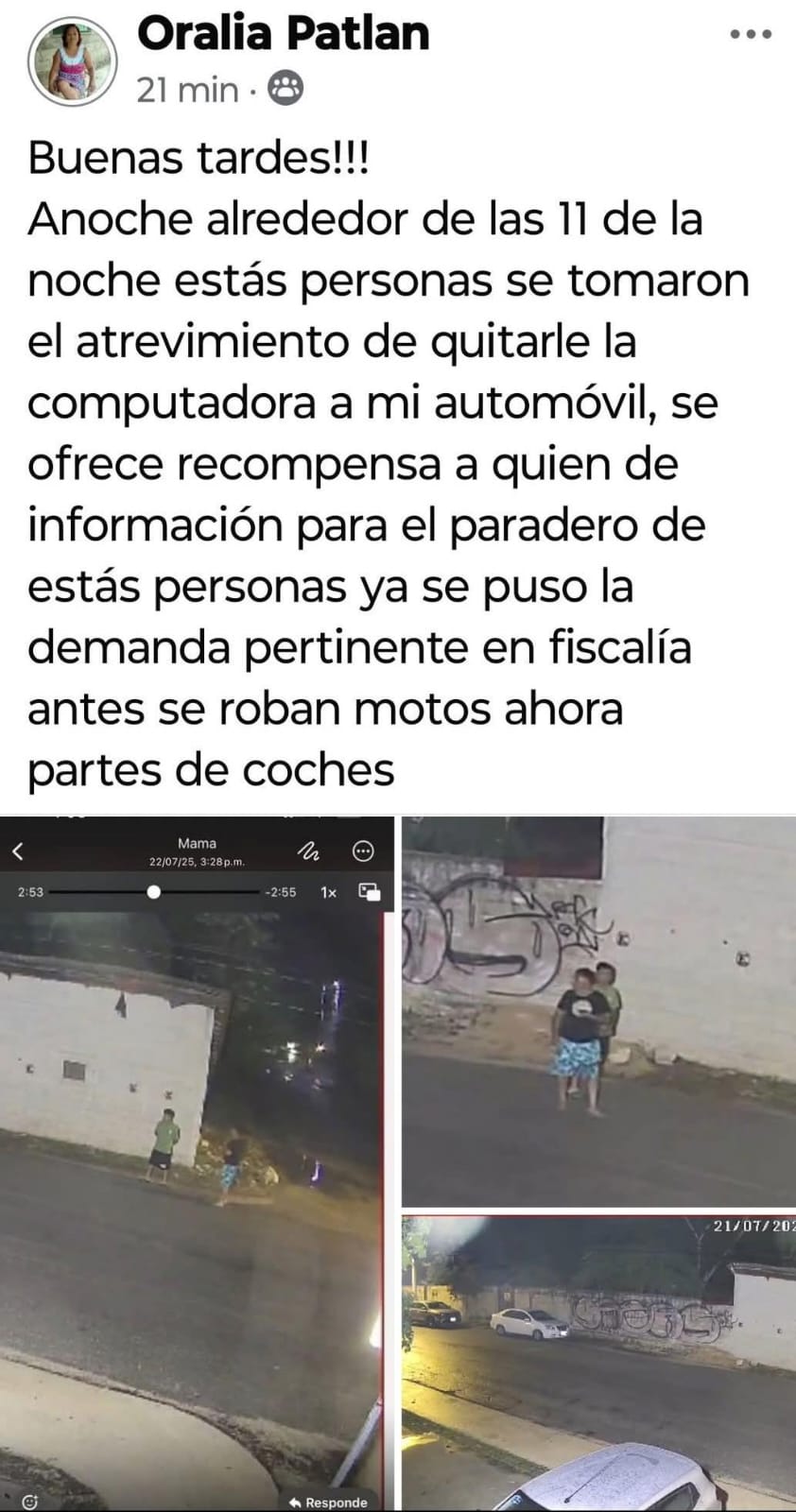 A través de redes sociales, el afectado difundió imágenes y un mensaje en el que ofrece una recompensa a quien pueda proporcionar información verídica sobre el paradero de los responsables o del artefacto robado. “Antes se robaban motos, ahora partes de coches”, lamentó en su publicación, advirtiendo sobre el aumento de este tipo de delitos en Tulum.