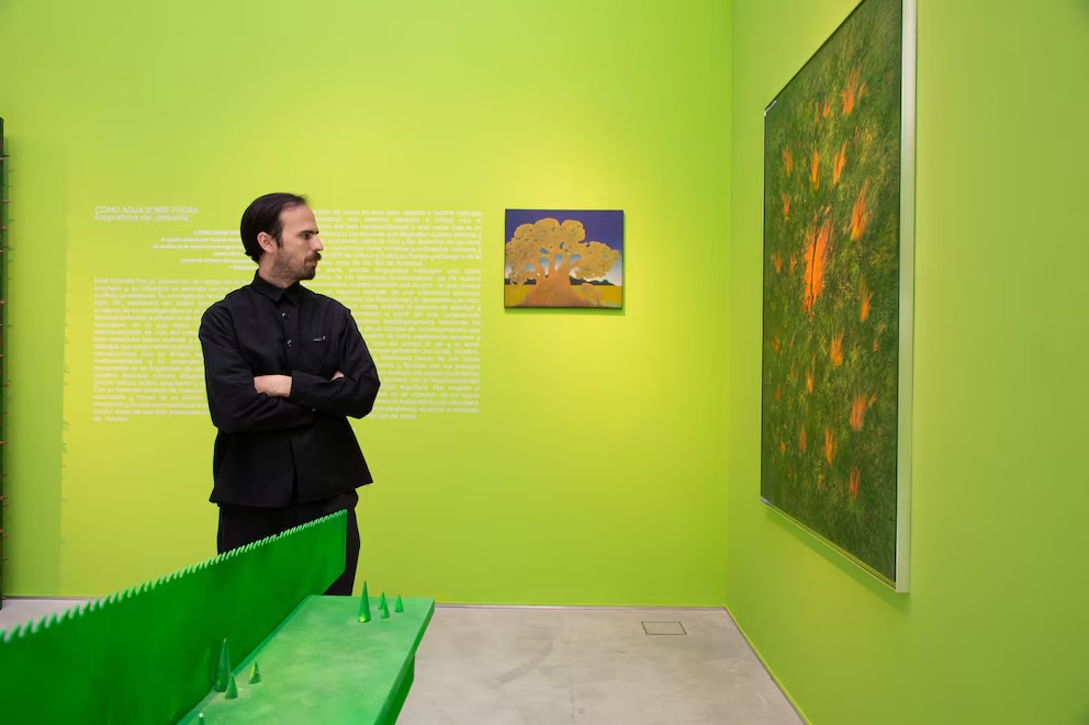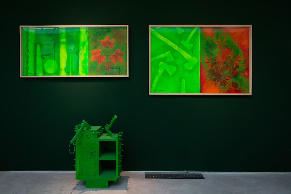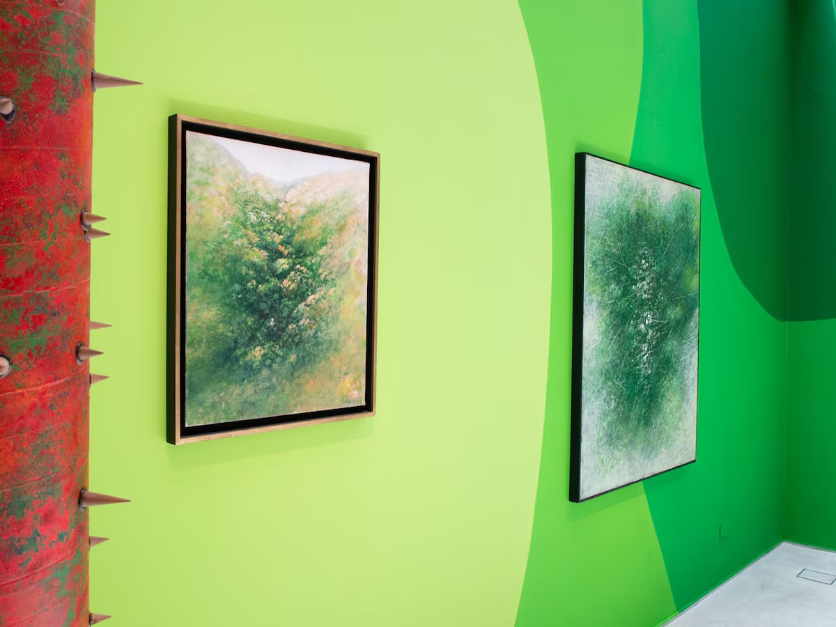 Entre diferentes tonos de verde, un ecosistema pleno de belleza y (también) de dolor se propaga en la sala principal de la Galería Oda, donde a través de las obras de Josefina Robirosa y Nicolás García Uriburu, se construye una exposición que explora los puntos en común que surgen entre la pintura, los dibujos, los objetos y las intervenciones de los artistas, con un énfasis especial en la conciencia medioambiental y la preocupación por la naturaleza.