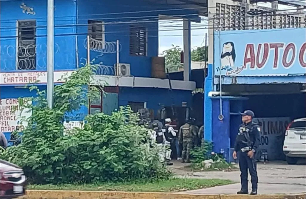 El primer operativo de cateo se observó el miércoles en la tarde, en una chatarrera ubicada en la colonia Jardines, sobre la avenida Bugambilias, a pocos metros del mercado Andrés Quintana Roo, con el apoyo perimetral de la Secretaría de la Defensa Nacional (Sedena), Guardia Nacional y Secretaría de Marina (Semar), mientras elementos de la Policía Estatal y Policía Municipal y de la FGE ingresaron al predio.