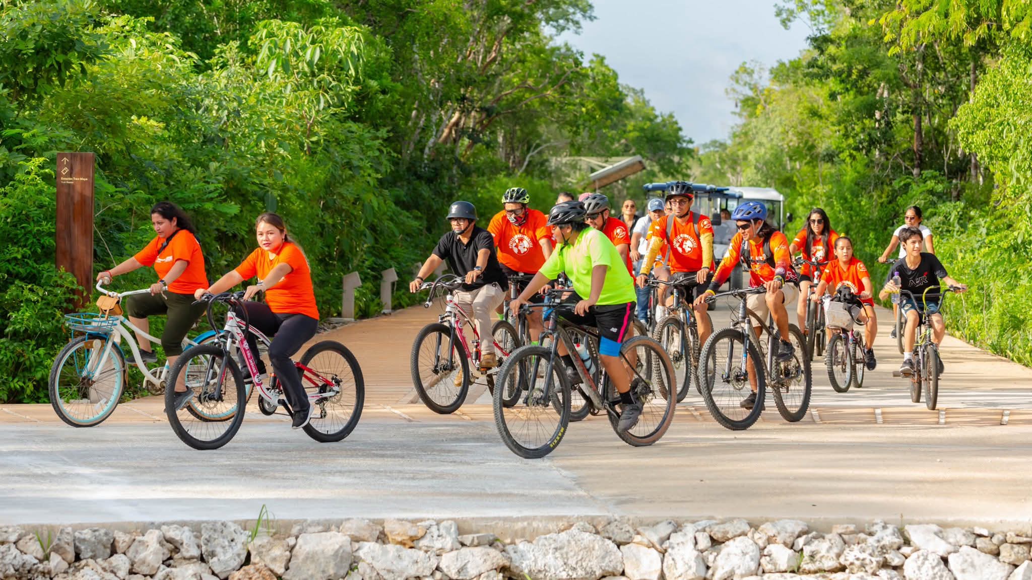 TULUM a 26 de julio de 2025.— En un acto simbólico y participativo, autoridades municipales y habitantes de Tulum se reunieron en el Parque del Jaguar para conmemorar el Día Naranja, una fecha que se celebra cada 25 de mes con el objetivo de crear conciencia sobre la violencia contra mujeres y niñas. La actividad principal fue una rodada en bicicleta bajo el lema “Rodada Naranja del Jaguar: Pedaleando por la igualdad”.