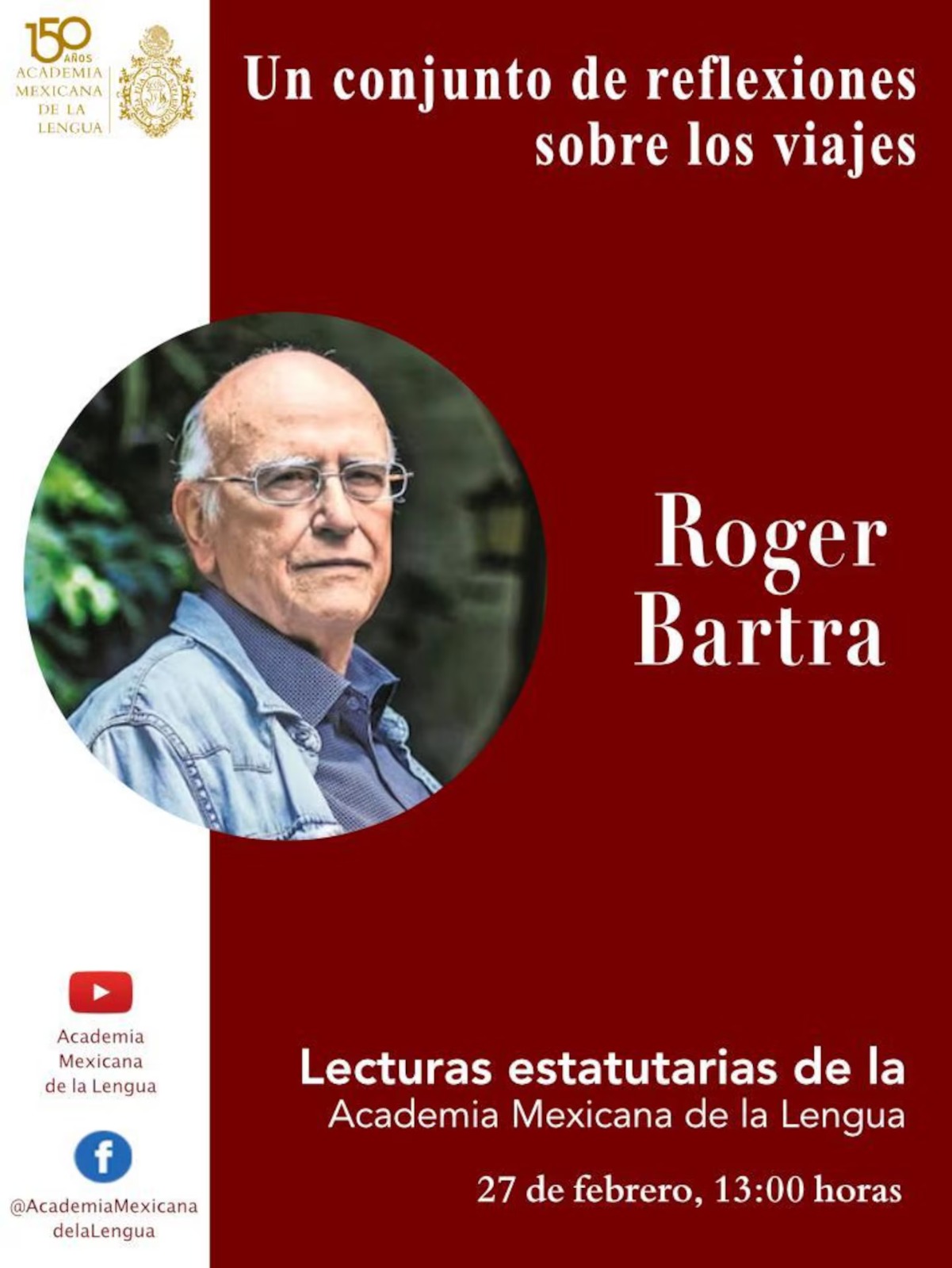 En el marco del ciclo Lecturas Estatutarias de la AML, Roger Bartra, sociólogo, antropólogo y miembro de número de la AML, leerá su ensayo “Un conjunto de reflexiones sobre los viajes”, en el que explora dimensiones del ir y venir, a partir de consideraciones filosóficas, literarias e históricas.