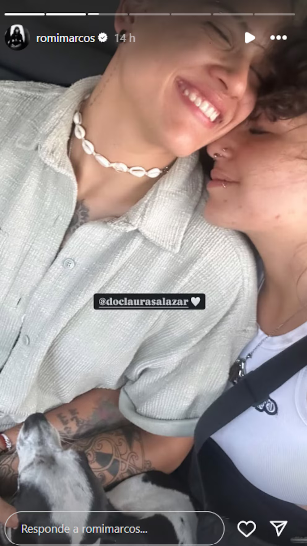 “Con mi amor”, se puede leer en la descripción de una primera foto colocada en sus historias de Instagram donde se le puede ver a la doctora creadora de contenido conduciendo un coche. Sin embargo, en una segunda se le ve a ambas abrazadas y aunque no colocó texto de descripción, para sus fans ha sido suficiente para confirmar la relación sentimental entre Romina Marcos y Laura Salazar.