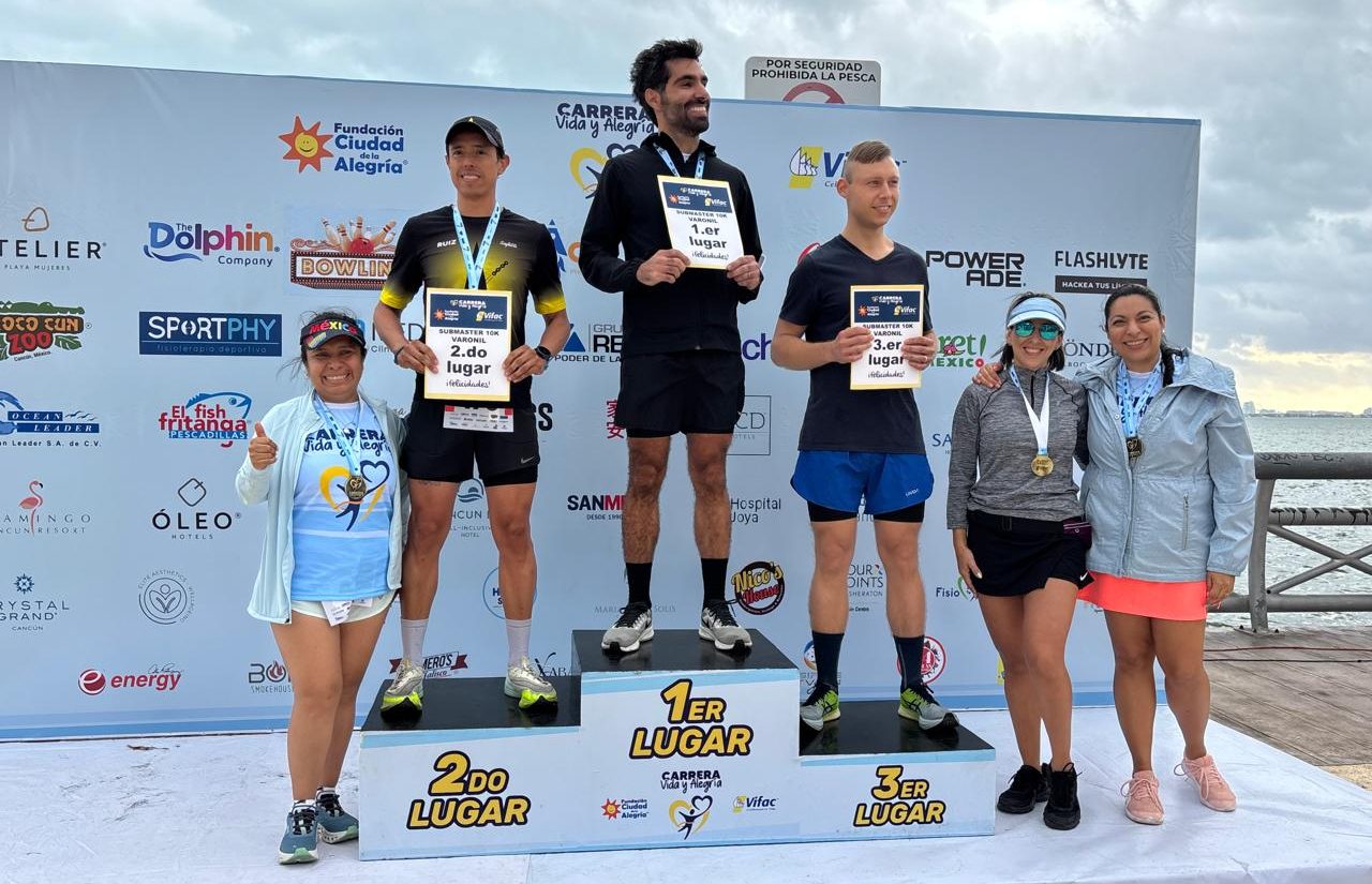 CANCUN Q. ROO, 26 de enero.- Rosa Cruz y Rodrigo Camarillo cruzaron de manera emocionante la meta para convertirse en los ganadores de los 10 kilómetros de la carrera “Vida y Alegría” organizada por VIFAC y la Ciudad de la Alegría en Malecón Tajamar con 700 participantes que protagonizaron un domingo familiar y deportivo.