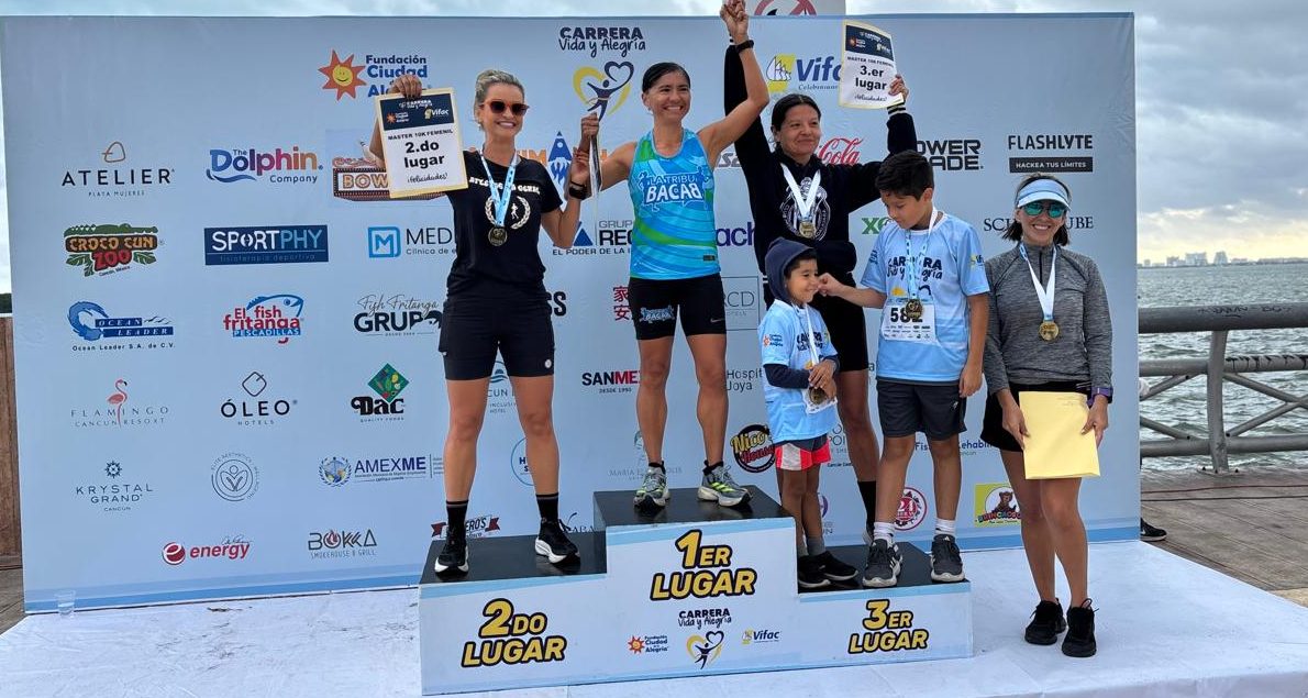 CANCUN Q. ROO, 26 de enero.- Rosa Cruz y Rodrigo Camarillo cruzaron de manera emocionante la meta para convertirse en los ganadores de los 10 kilómetros de la carrera “Vida y Alegría” organizada por VIFAC y la Ciudad de la Alegría en Malecón Tajamar con 700 participantes que protagonizaron un domingo familiar y deportivo.