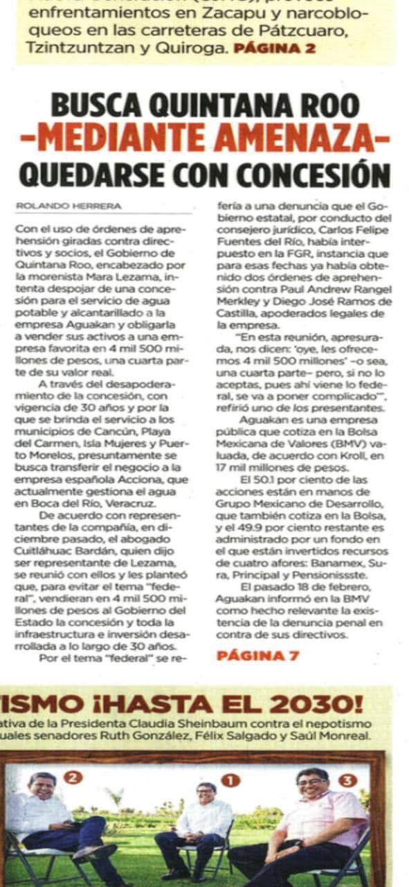 Era muy bonito para ser cierto… Aguakán dice, en medios nacionales, que arrebatarle la concesión de agua potable, en los municipios norteños de Quintana Roo, tiene como trasfondo entregársela a la empresa “Acciona”, de origen español…