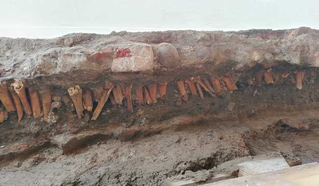 Según la arqueóloga, la manera en que colocaron los huesos indica que buscaron tener una superficie plana, resistente y permeable, que estabilizara el sustrato y facilitara la absorción de lluvia, en lo que pudo ser un patio de un cuartel.