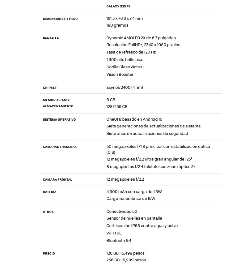 Samsung Galaxy S25 Fe Lanzamiento Precio Mexico Caracteristicas Especificaciones Ficha Tecnica
