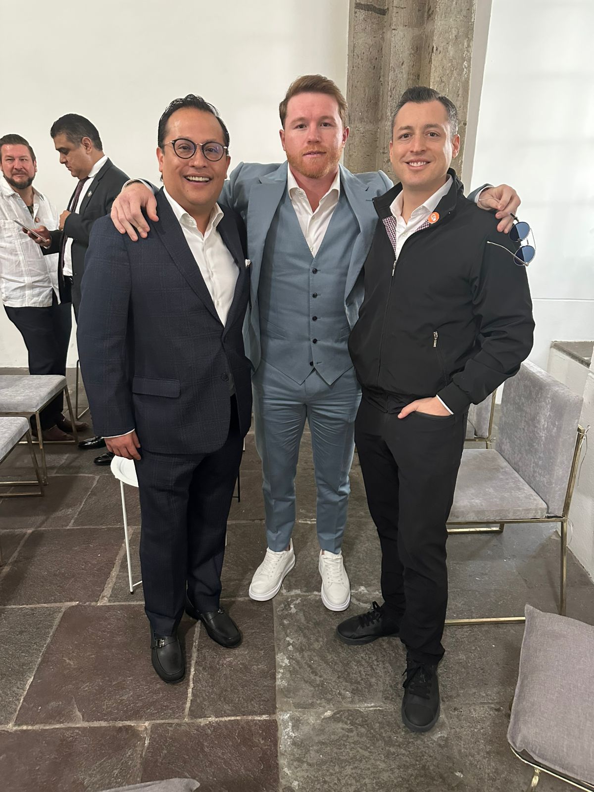 El boxeador mexicano Saúl Álvarez asistió este viernes al primer discurso del nuevo gobernador de Jalisco Pablo Lemus que se llevó a cabo en el Museo Cabañas.