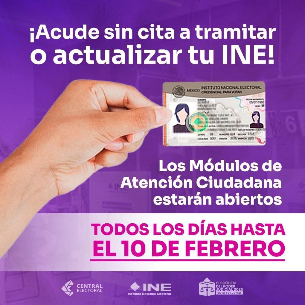 Cancún, Quintana Roo, 09 de Febrero 2025. – El Instituto Nacional Electoral (INE) anunció la apertura de los módulos fijos y la ampliación de horarios de atención hasta las 8 de la noche este lunes 10 de febrero.