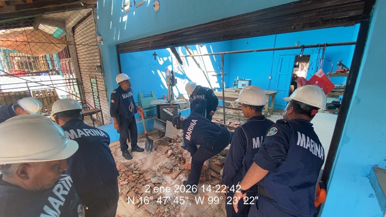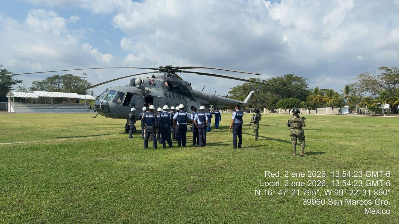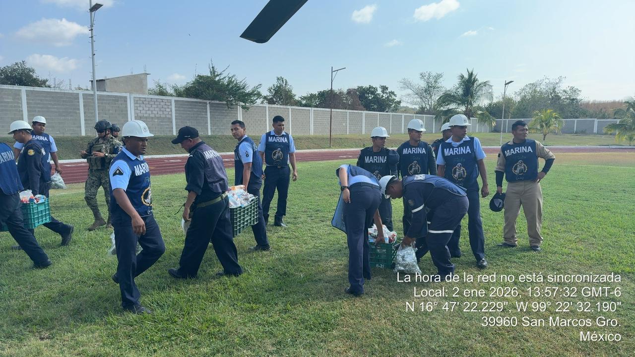 Acapulco, Gro., 02 de enero. – La Secretaría de Marina a través de la Armada de México, por conducto de la Octava Región Naval, en coordinación con autoridades de los tres órdenes de gobierno, activó hoy el Plan Marina en su Fase de Auxilio en el Estado de Guerrero, debido al sismo con magnitud de 6.5 grados en escala de Ritcher, con epicentro localizado a 15 kilómetros al sureste del Municipio de San Marcos.